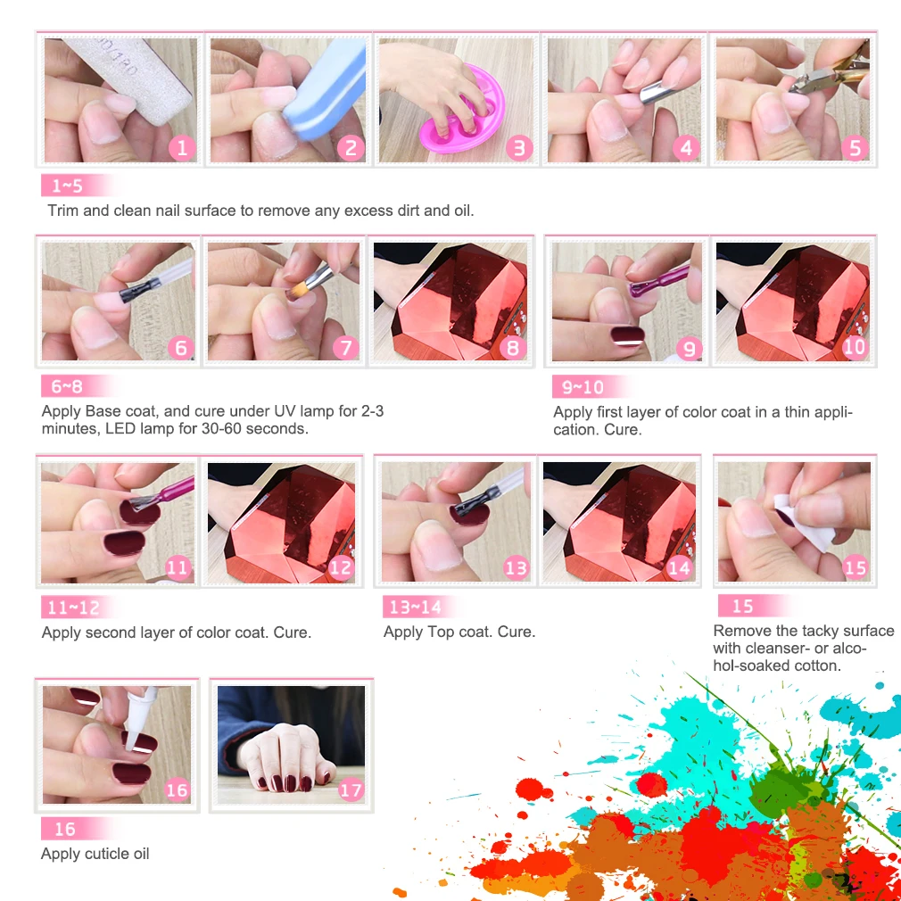* Длительный срок службы не менее 2-3 недель, фантастические и супер яркие ногти для вас.