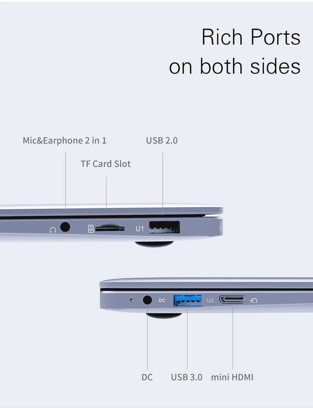 EZbook S5 поддерживает двухдиапазонный Wi-Fi Intel 802,11 AC. Предоставьте вам превосходный опыт в серфинге в Интернете, онлайн-видео и играх. Встроенный bluetooth 4. 2 беспроводное соединение.