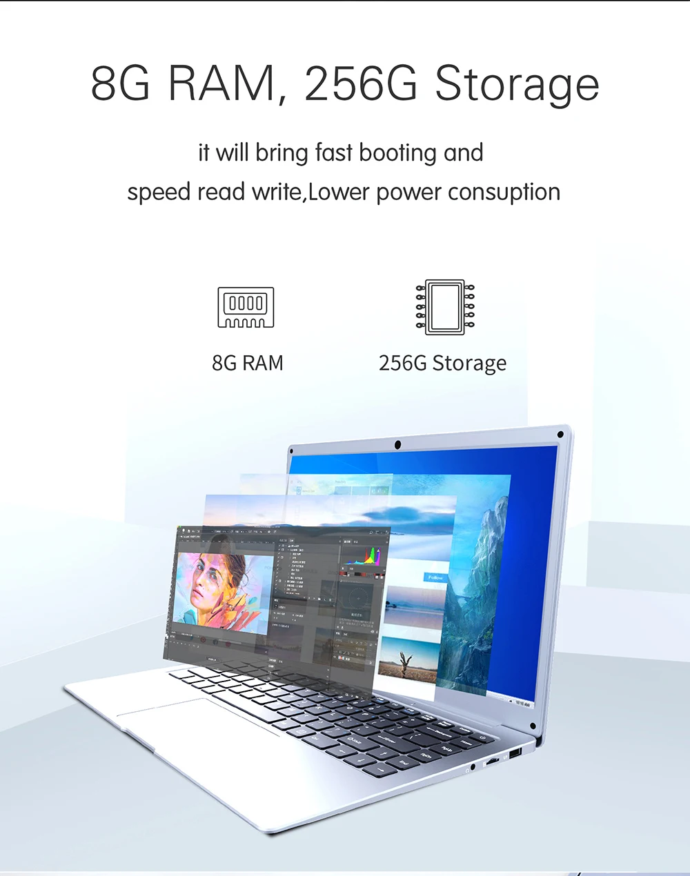 ●Ultra светильник и тонкий 14-дюймовый экран размер, вес тела составляет всего 1,25 кг, толщина всего 1,5 см, портативный и красиво.