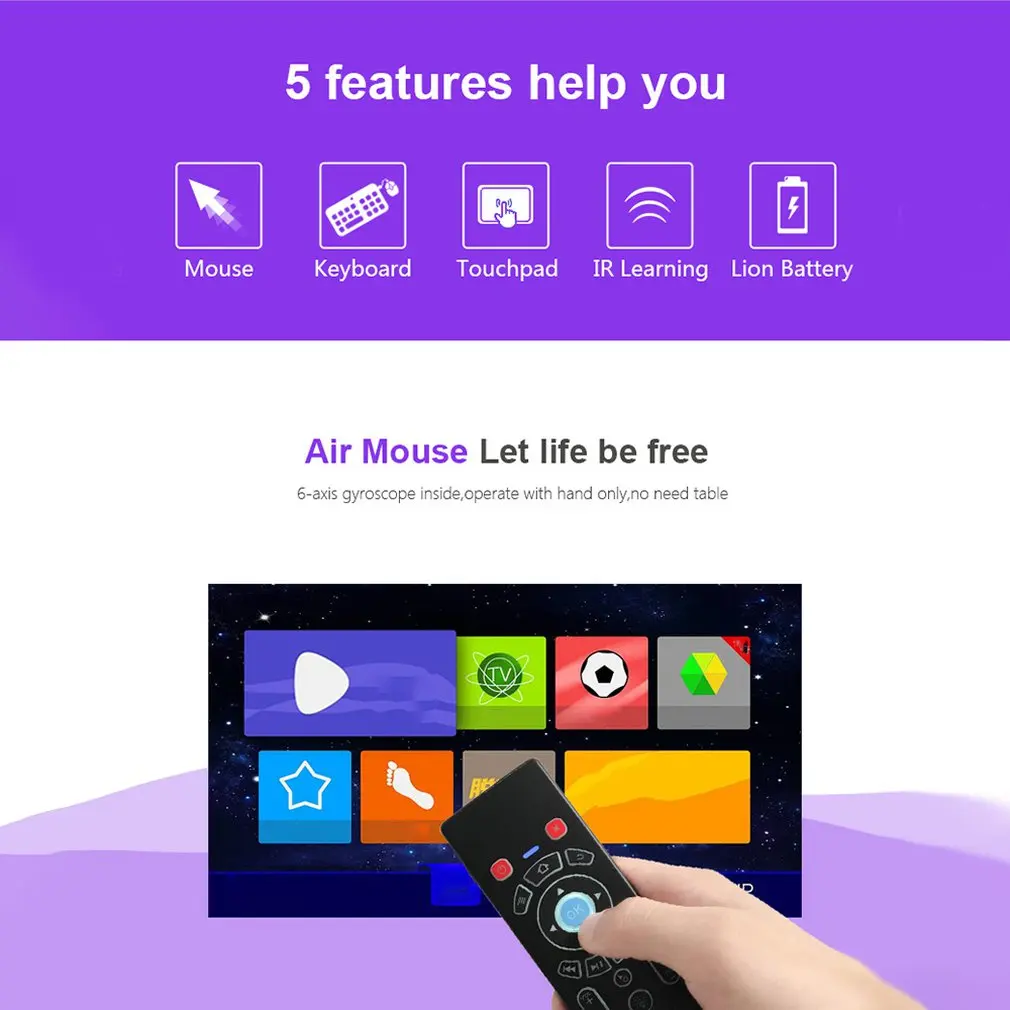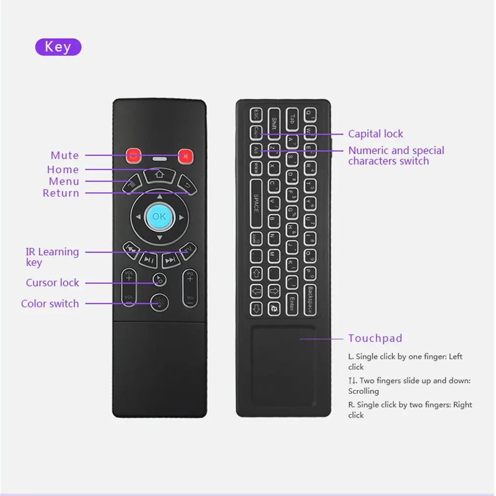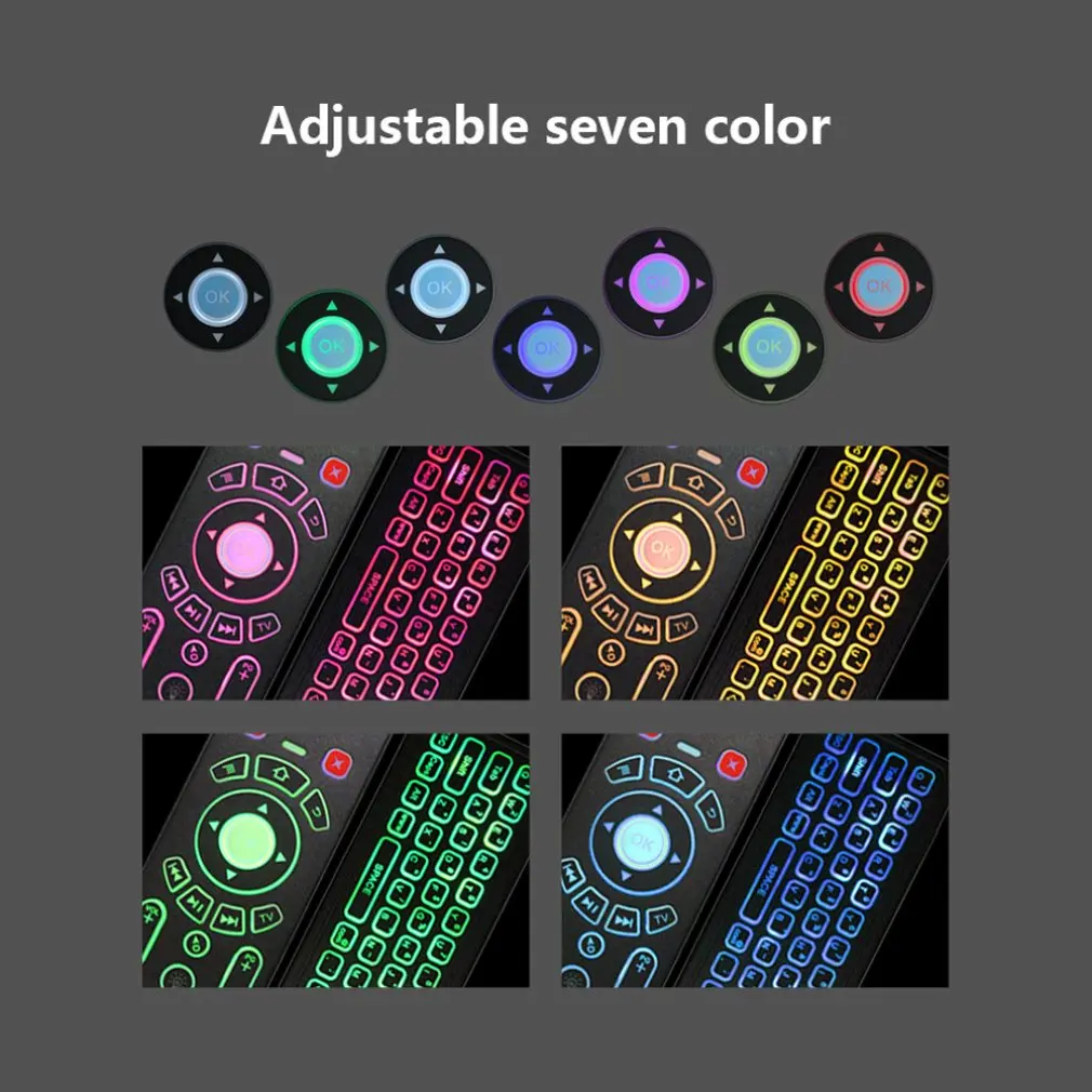 Беспроводная Летающая мышь красочная подсветка Мини мультимедийная клавиатура сетевая телеприставка Смарт ТВ пульт дистанционного управления русский английский
