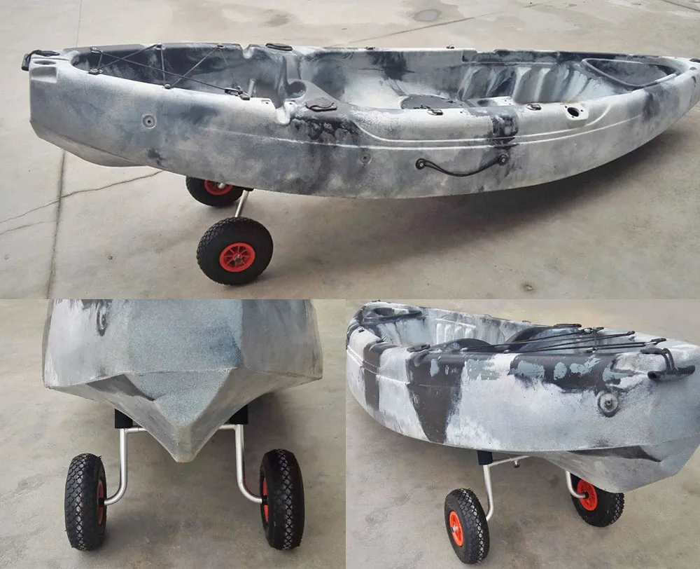 Эта тележка Каяка очень проста в установке и использовании. Большие пневматические резиновые шины плавно катаются по песку, гравия и дороге. Это отличная тележка для транспортировки Каяка и экономии энергии.