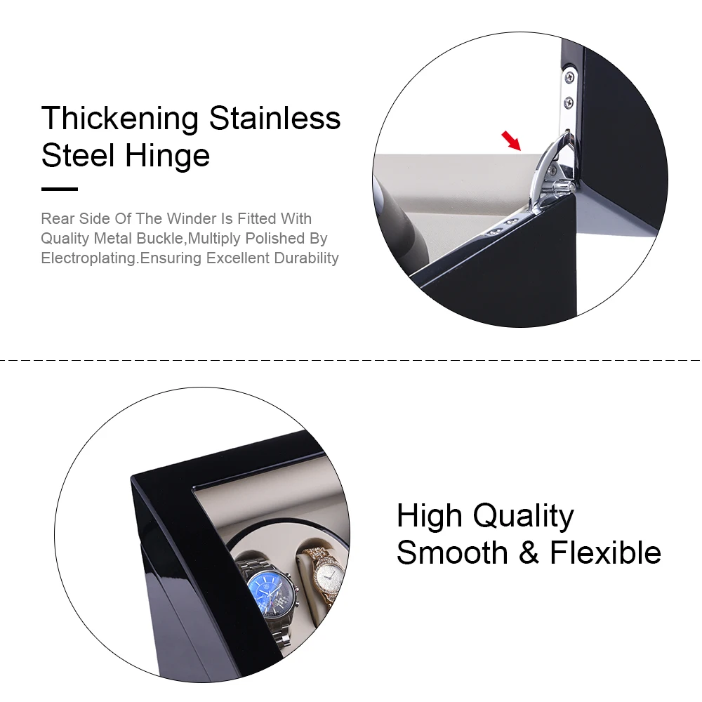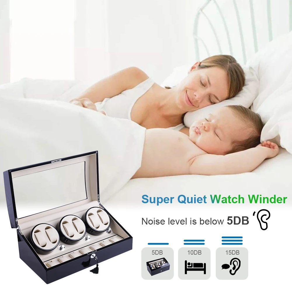 【Extremely Quiet Winder】: This automatic watch winder box is powered with Imported Japanese Mabuchi, the noise is even as low as 5 db, will never disturb you in a silent place.