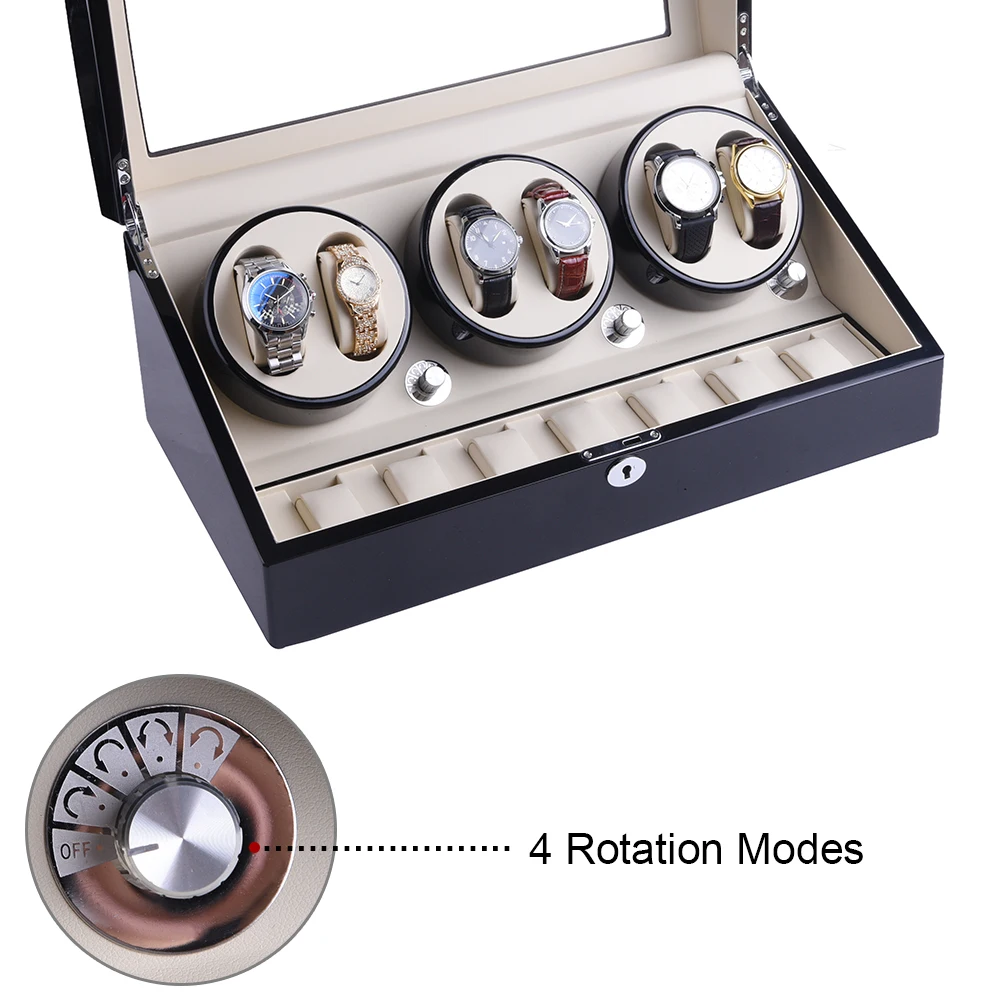 【4 Rotation Modes】Clockwise/Counterclockwise/Clockwise+counter-clockwise/ None-Intermittent clockwise +counter clockwise. The watch winders turn at regular intervals to keep the watch automatically wound and accurate when not on the wrist.