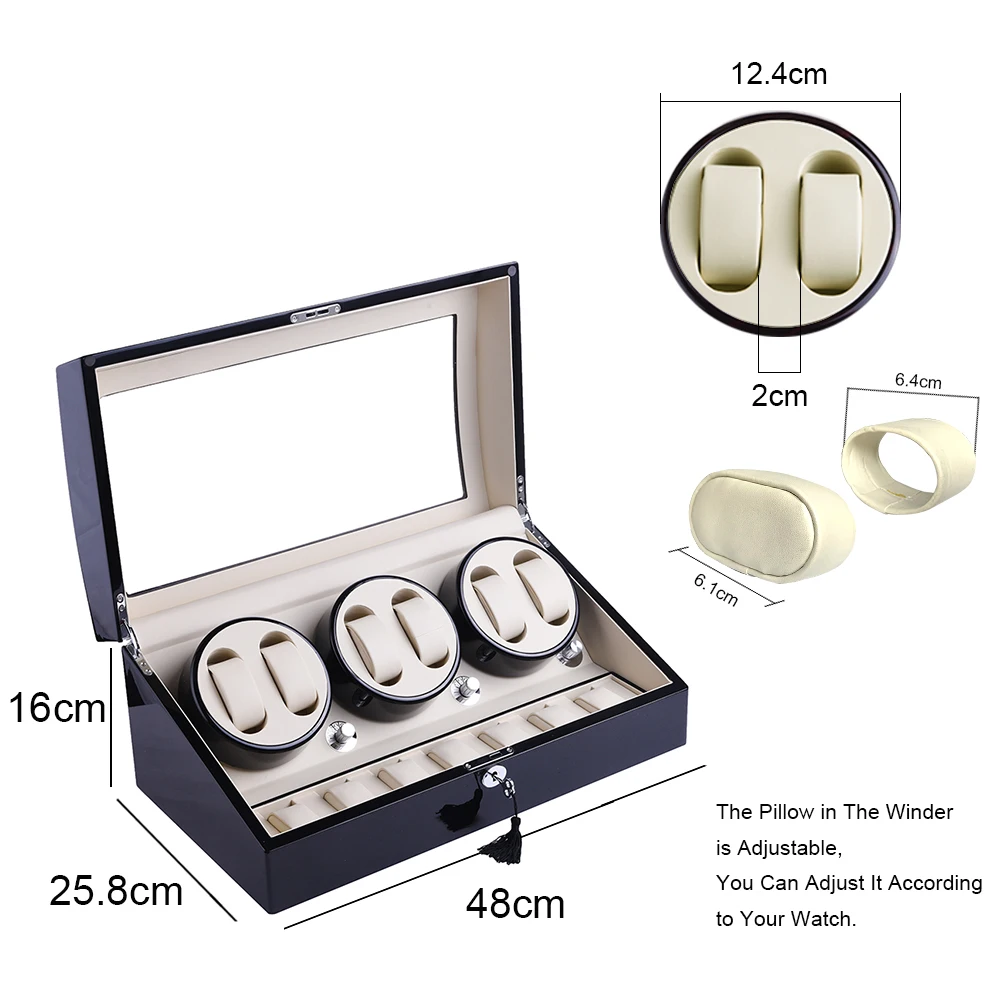 【High Quality Material】: This watch winders is 100% Handmade of natural wooden and high grade piano lacque, use PU interior, clear organic glass cover protects your watch dust free.