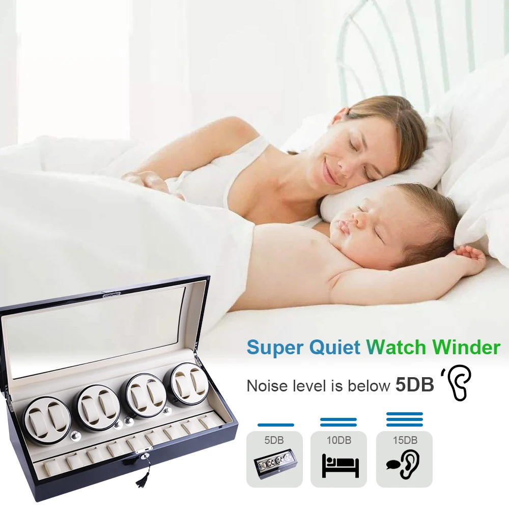 【Очень тихий Winder】: эта автоматическая коробка для намотки часов питается от импортных японских Mabuchi, шум даже ниже 5 дБ, никогда не будет мешать вам в тихом месте.