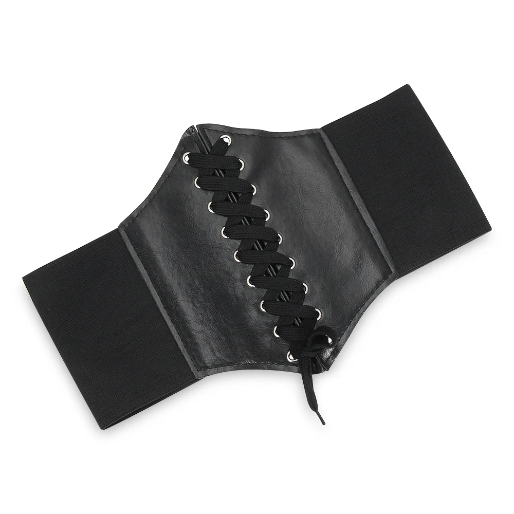 New Women Charm PU Leather Wide Corset Waistband Lace Up Band Elastic Stretch Cinch Waist Belt Hot Sale