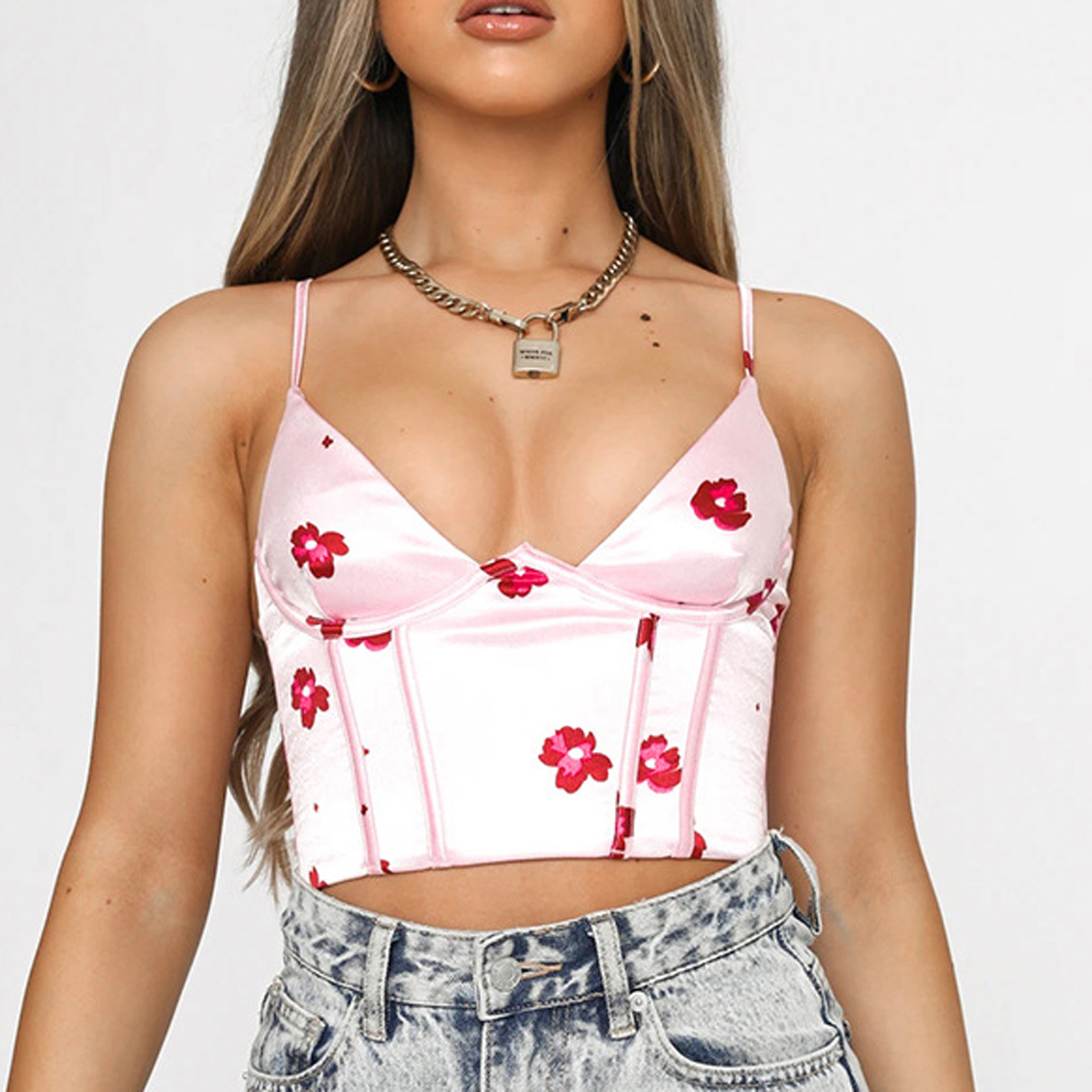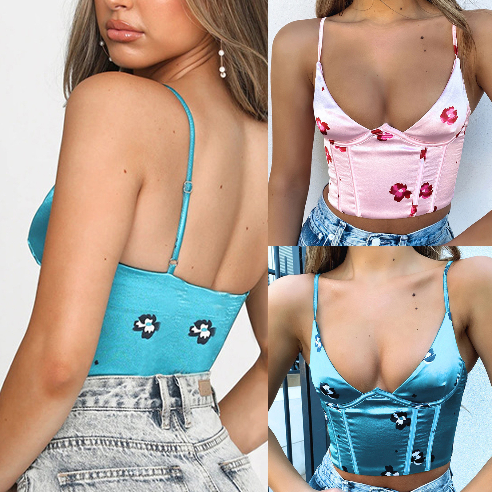 Женский модный Повседневный короткий жилет с цветочным принтом и v-образным вырезом без рукавов с открытой спиной