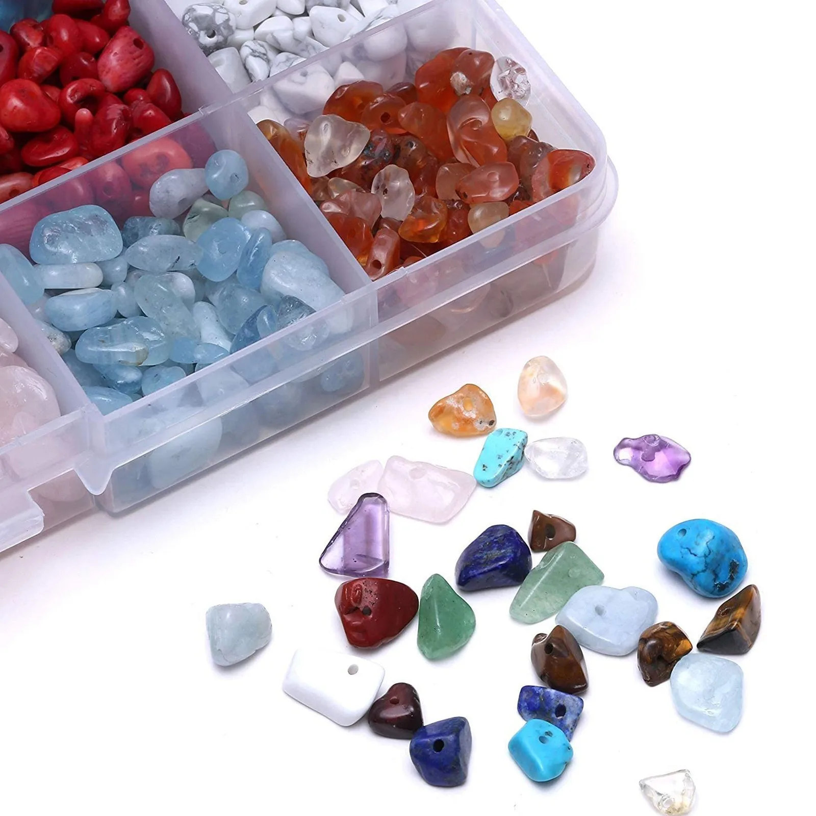 Высококачественный материал ----- все бусины отделаны термообработкой и полировкой поверхности. 1000 шт количество ----- около 110 ~ 150 шт чакра бусины из 10 различных материалов. Приблизительный размер: 4x3x1мм ~ 6x4x2 мм; Convienent для переноски и хранения-кристаллы, которые сортируются по каждому цвету, хранятся в высококачественный Органайзер, контейнер для хранения. Удобно для вас, чтобы собрать, носить и хранить в любом месте! Многократное использование ----- эти бусины из чакры хороши для изготовления и дизайна ювелирных изделий, искусства и ремесла, подарка DIY, изготовления браслета для ожерелья, браслета для йоги, сережек или колец, дома или свадьбыВключает: