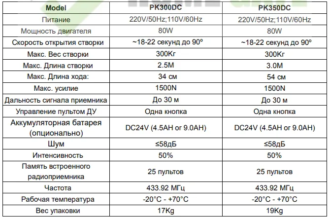 300dc-for Gates weighing up to 350 kg and sash length not more than 3 m.