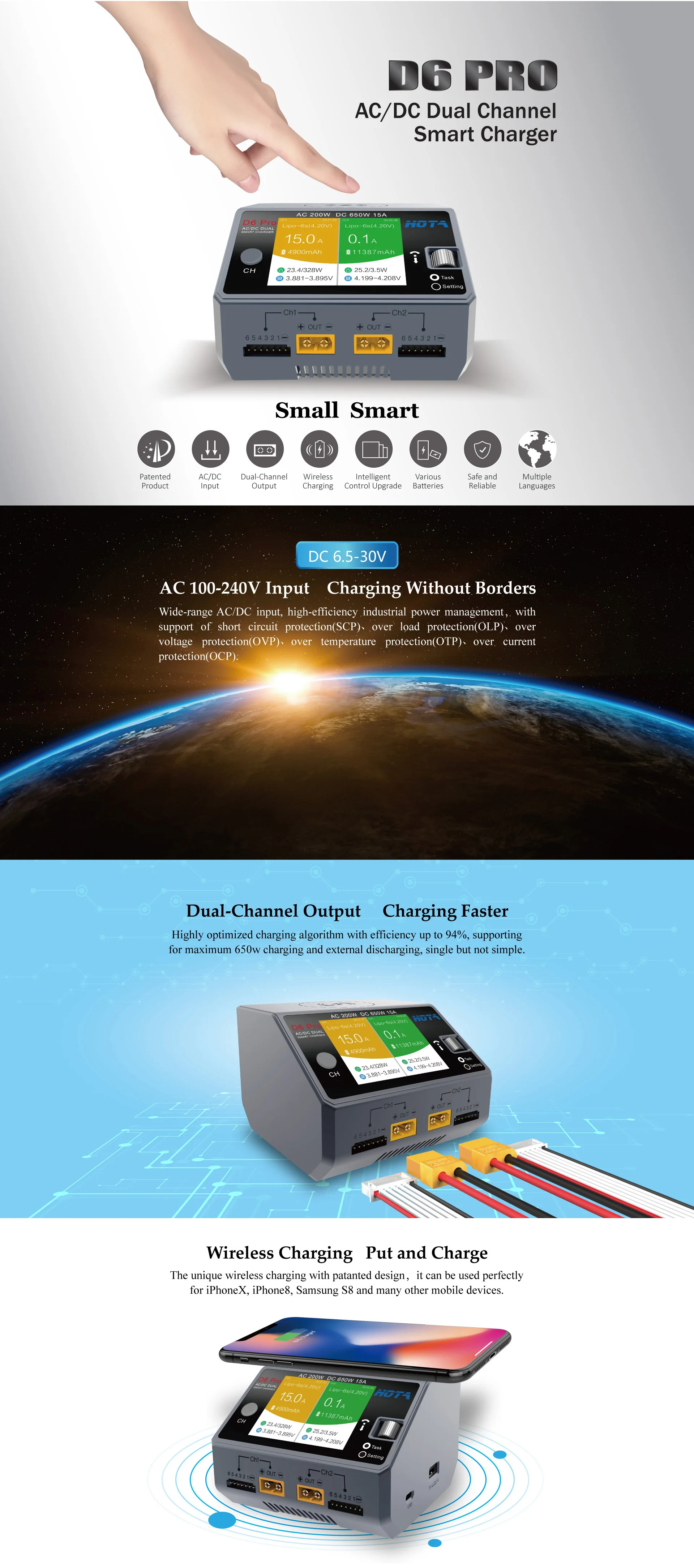 Зарядное устройство HOTA D6 Pro-1 шт.