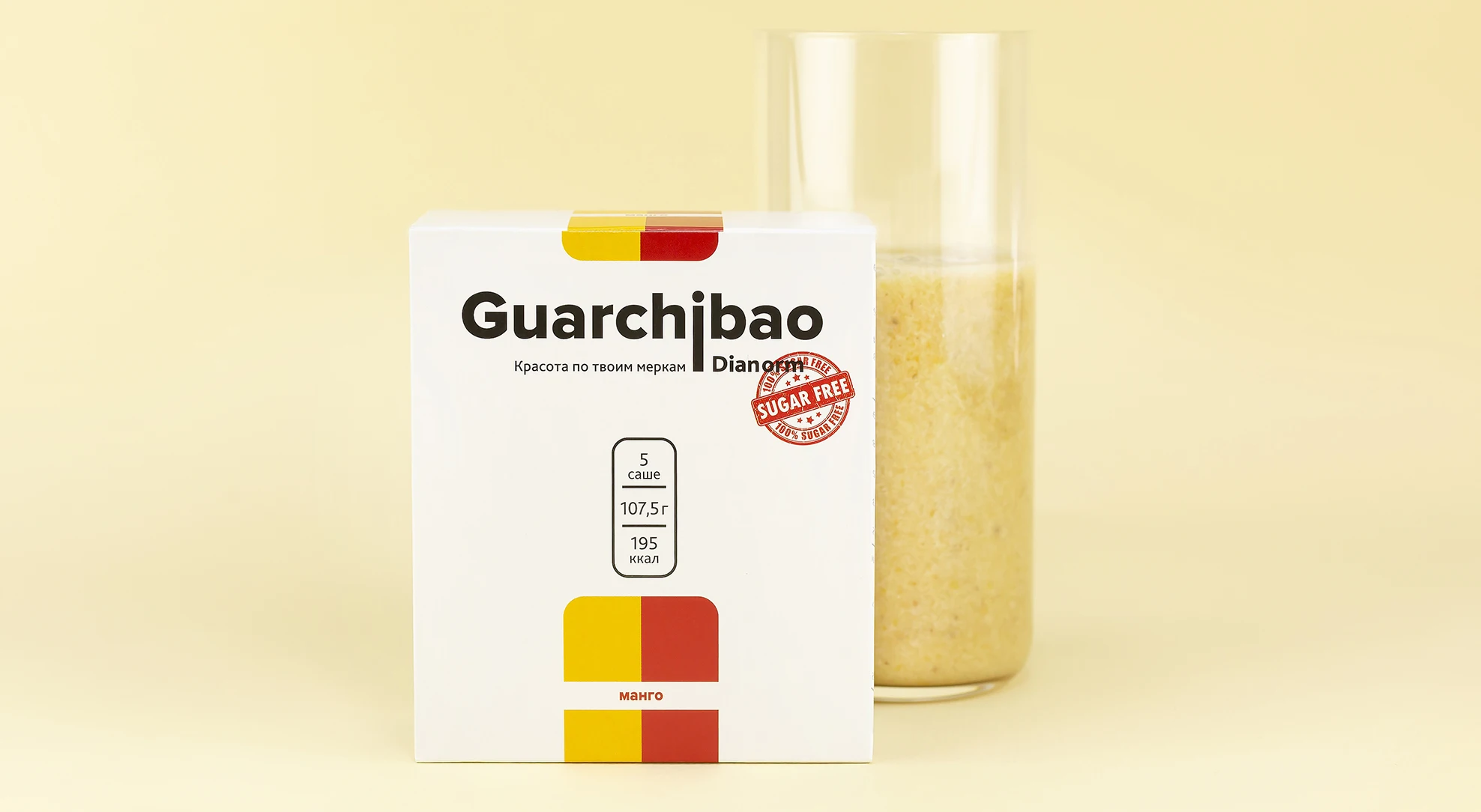 Коктейли Guarchibao Dianorm Манго – это полноценный прием пищи. Разработан продукт для ускорения обмена веществ, снижения аппетита и уменьшения калорийности ежедневного рациона. Саше не содержат сахара, поэтому отлично подходят для людей с диабетом. Полидекстроза в их составе действует как природный пребиотик, ускоряет метаболизм и способствует снижению уровня холестерина. Экстракт гуараны активизирует обмен веществ и способствует расщеплению жиров. Экстракт плодов баобаба нормализует работу пищеварения и снижает аппетит. При этом в одной порции коктейля содержится всего 39 ккал и оптимальный набор витаминов для безопасного и комфортного снижения веса.