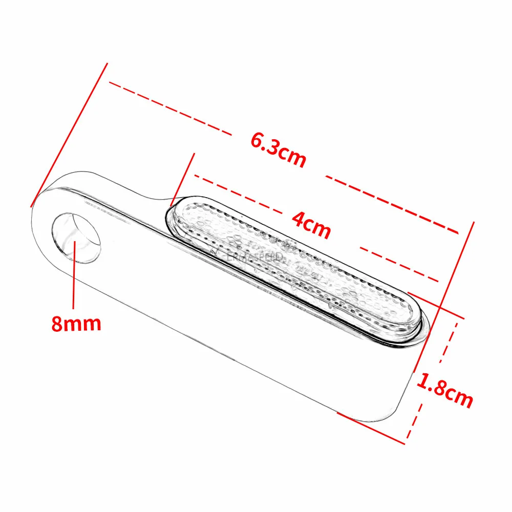 -Состояние: 100% новый бренд -Напряжение: 12 В постоянного тока -Цвет корпуса: черный/серебристый -Светодиодный Цвет: янтарный -Размеры: 6,3 см * 1,8 см -Длина линии: 50 см -Подходит для любого размера и стиля мотоцикла -Количество: 1 пара