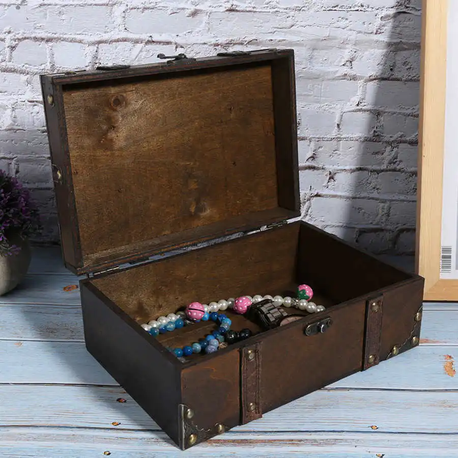 Vintage Large Capacity Wooden Jewelry Storage Box Decorative Treasure Lockable Necklace Earring Ring Storage Box Women Gifts