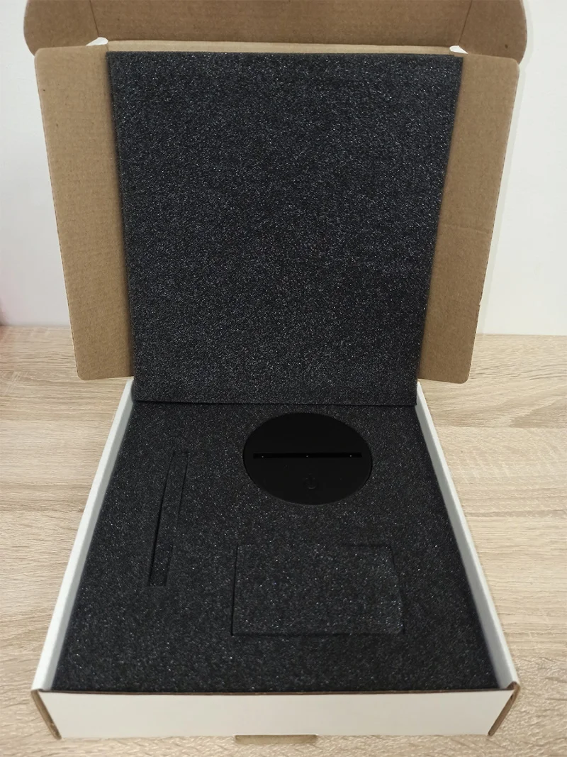 Комплект 3D светильника: 1 пластина, 1 USB кабель, 1 подставка, 1 пульт ДУ, 1 инструкция, 1 подарочная упаковка.