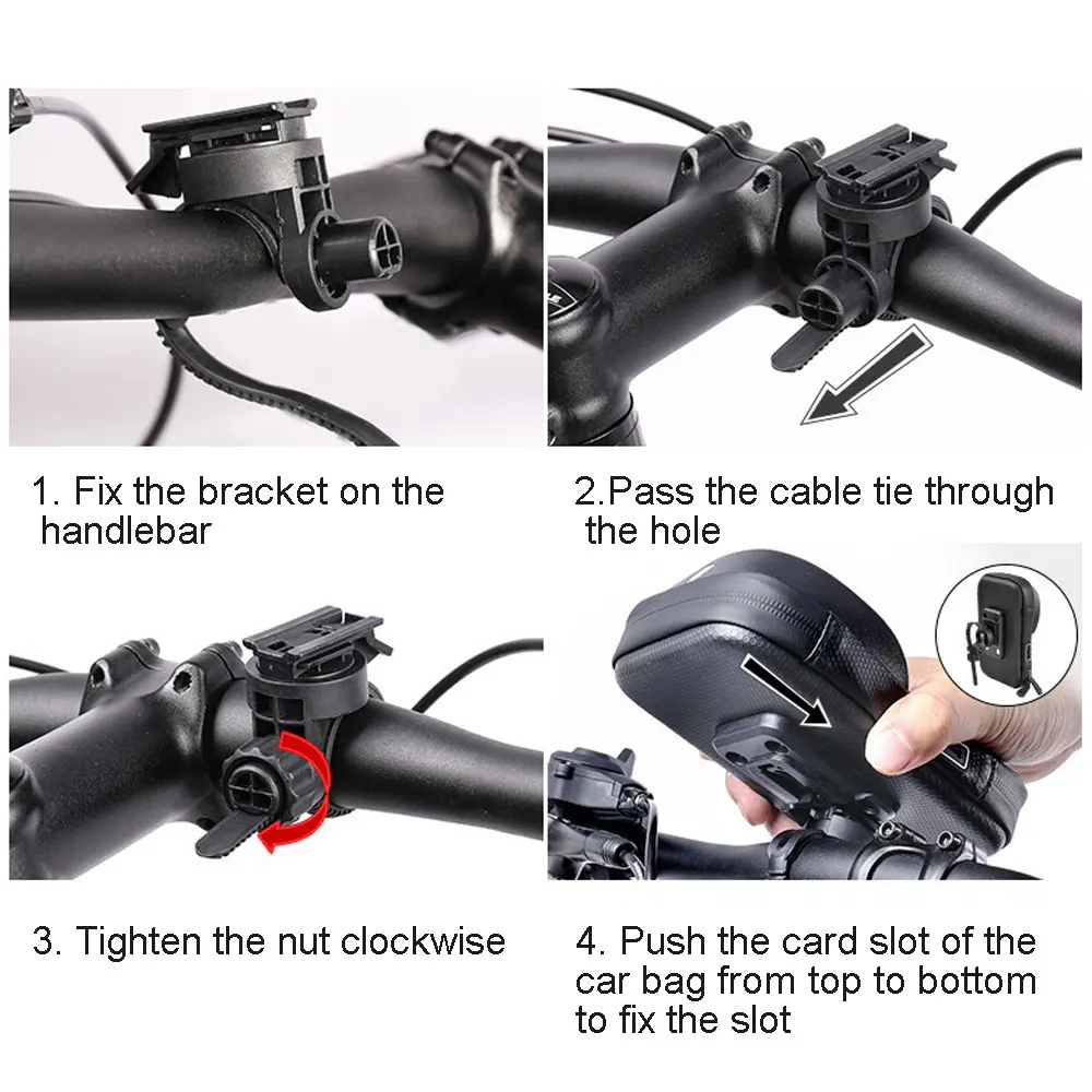 Быстрая установка и безопасность: сумка специально разработана с сильным фиксирующим кронштейном, который может быть прочно закреплен на руле велосипедов, электромобилей и мотоциклов, не падая.