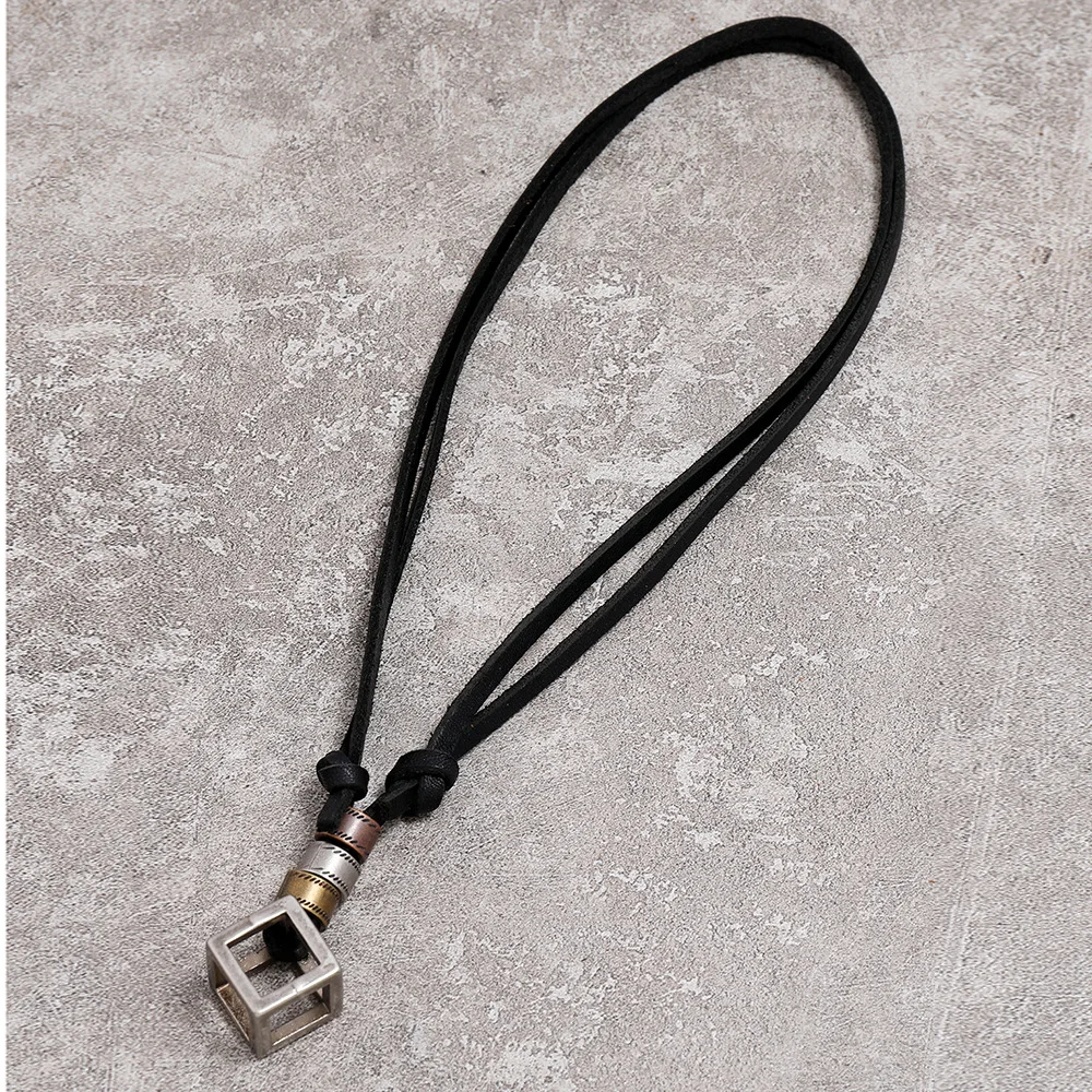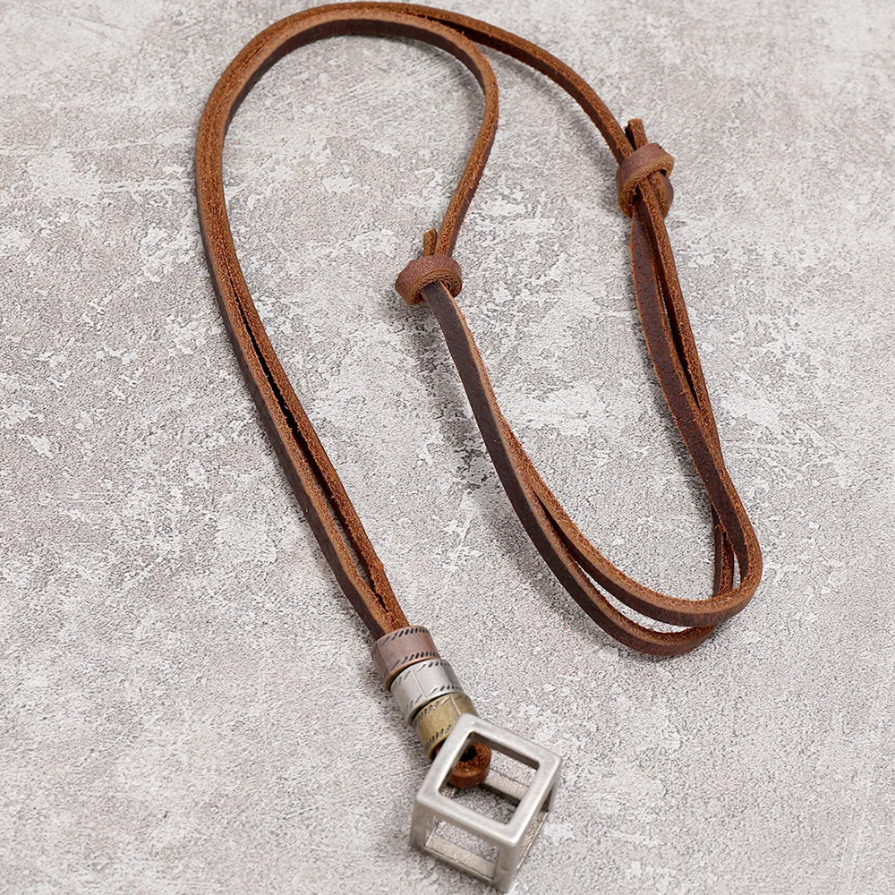 Мужское ожерелье из 100% натуральной кожи, винтажные треугольные подвески, регулируемая коричневая цепочка, женский воротник, ювелирные изделия