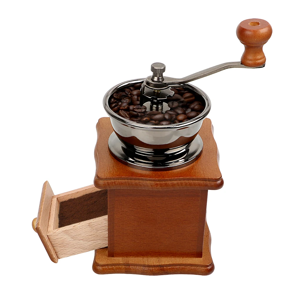 100% Новый брендДерево + материал из нержавеющей стали, высокое качество и долговечность для использованияИнновационная мельница для кофейных зерен дарит специи с удовольствием и легкостьюЭто хороший шлифовальный инструмент для кофейных зерен на кухнеИдеальный гаджет, чтобы сделать свежие кофейные бобы порошок для наслаждения вкусным кофеХарактеристики: