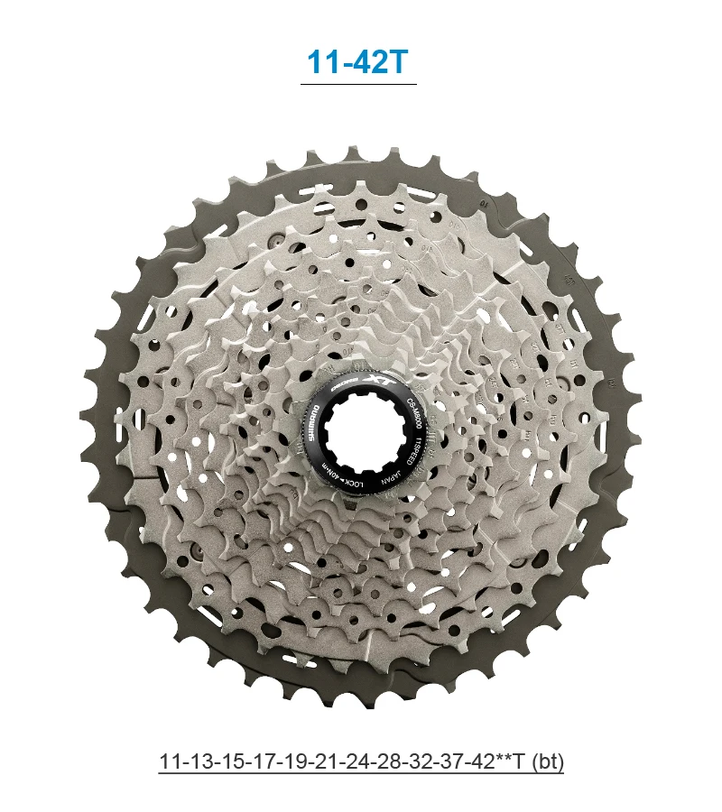 SHIMANO DEORE XT - 11-Speed - HYPERGLIDE - MTB кассетные звездочки -- Ездить в любом месте с гладкой и точной передачей -Повышение эффективности вождения и стабильное переключение -- Сбрить вес велосипеда без ущерба для долговечности или надежности -- Комбинация: 11-40T (bs):11-13-15-17-19-21-24-27-31-35-40 ** T (bs) 11-42T (bt):11-13-15-17-19-21-24-28-32-37-42 ** T (bt)