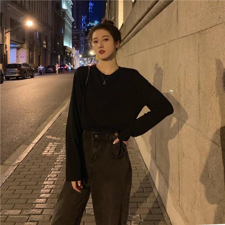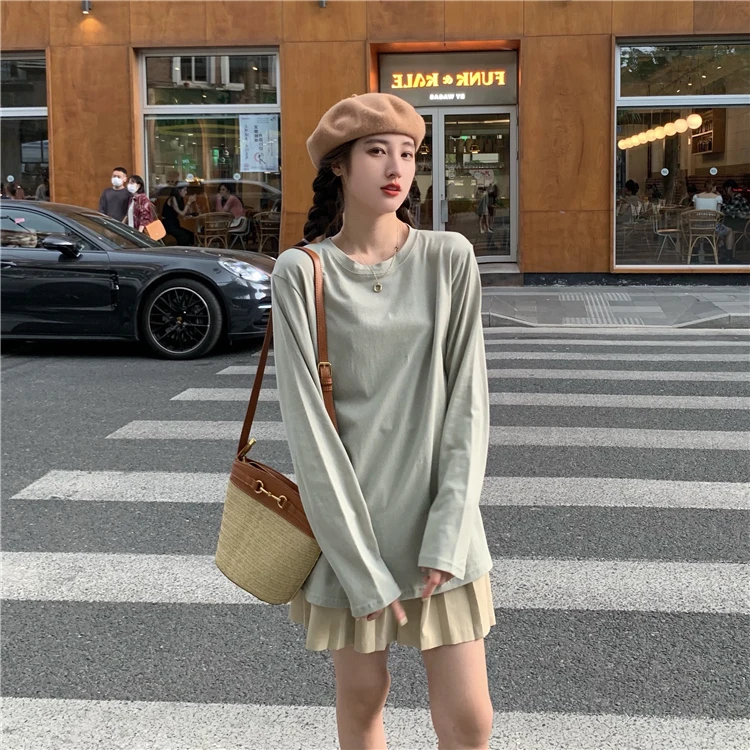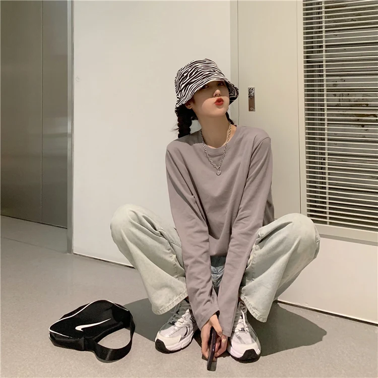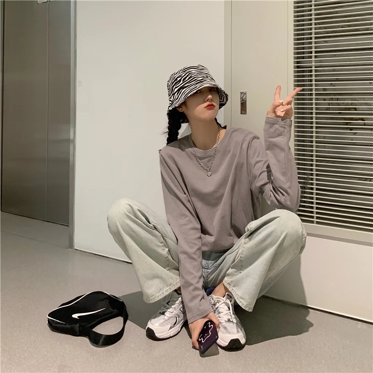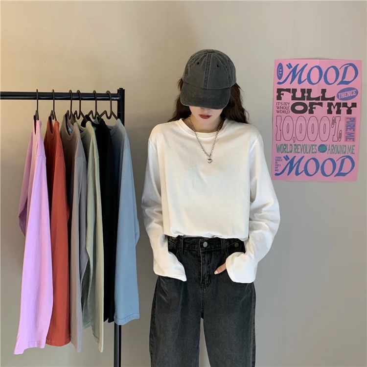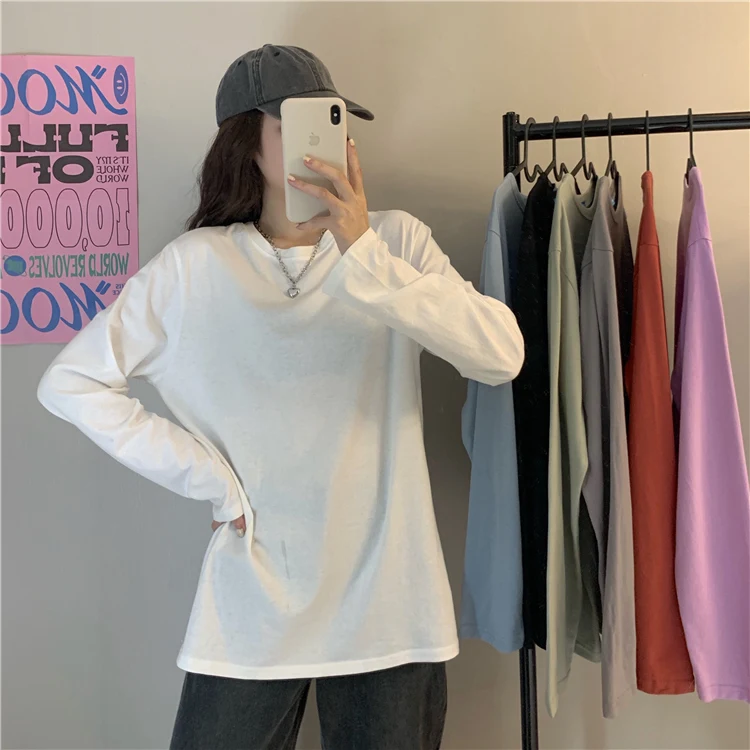 Женская футболка с длинным рукавом TingYiLi, Повседневная Свободная длинная футболка в Корейском стиле, черный, белый, серый, фиолетовый, синий, зеленый топ