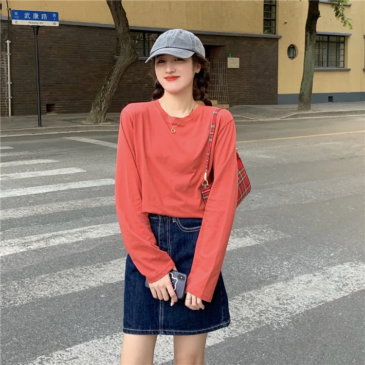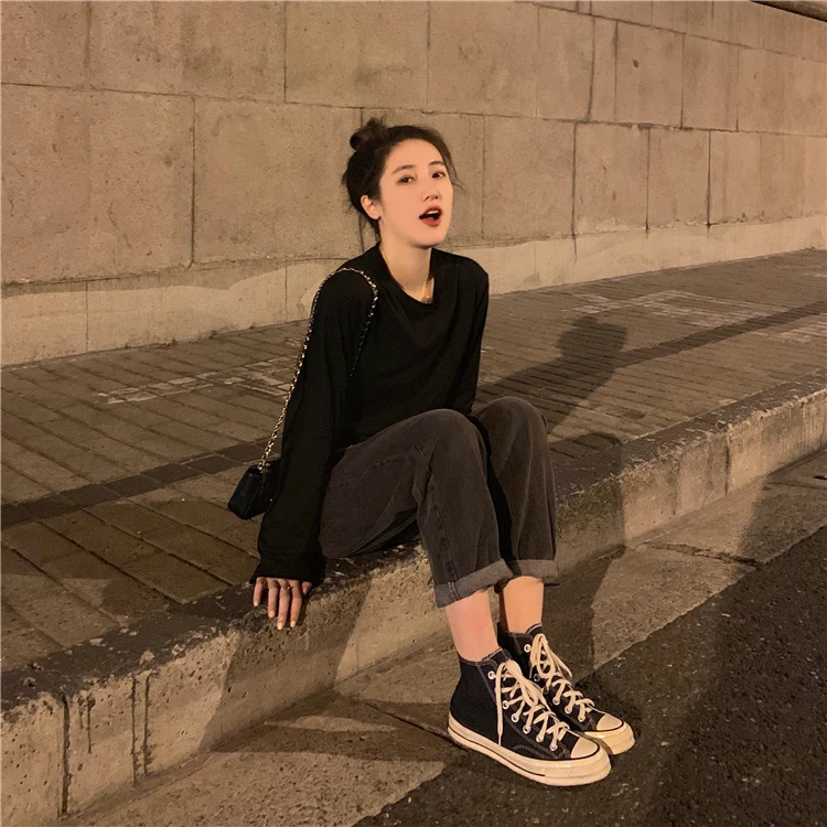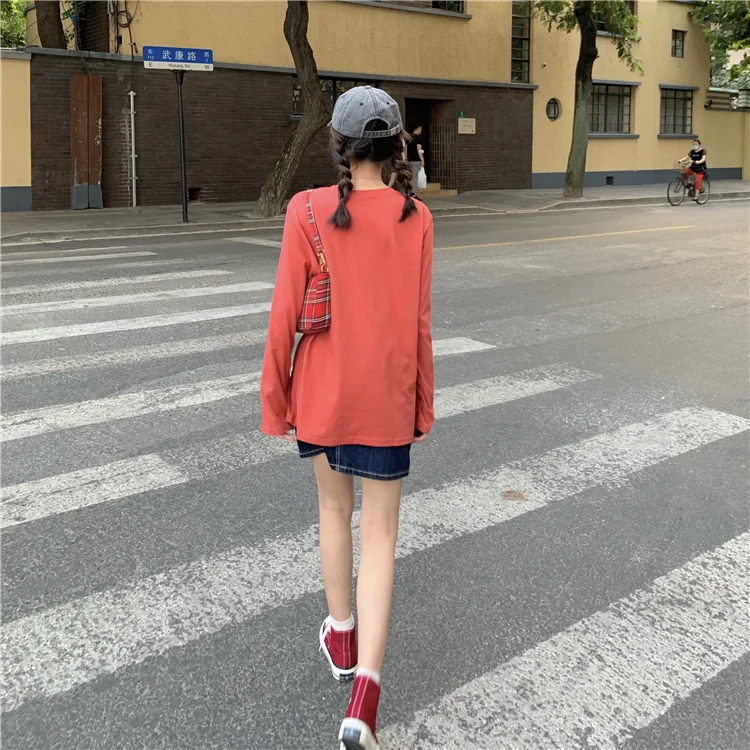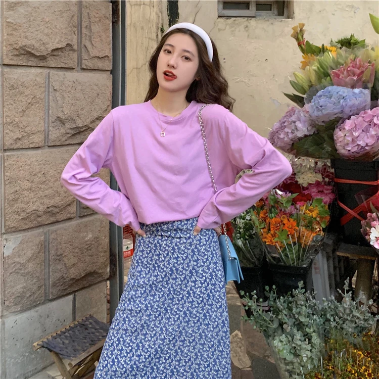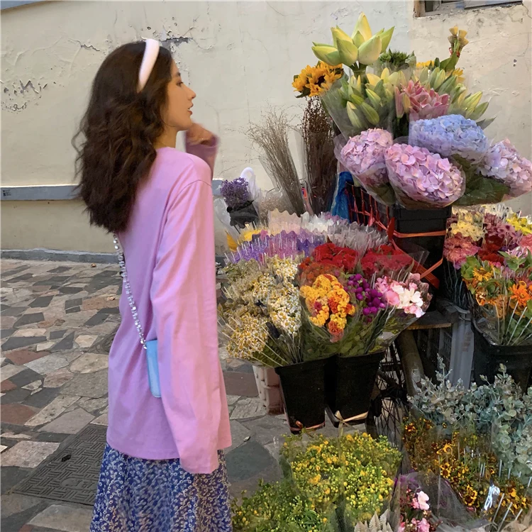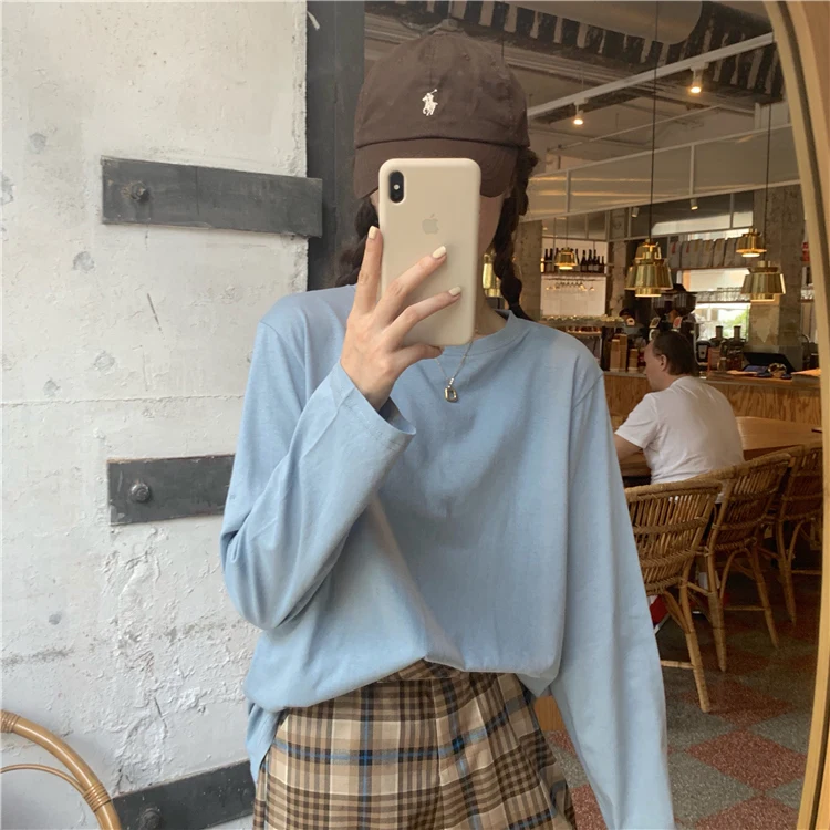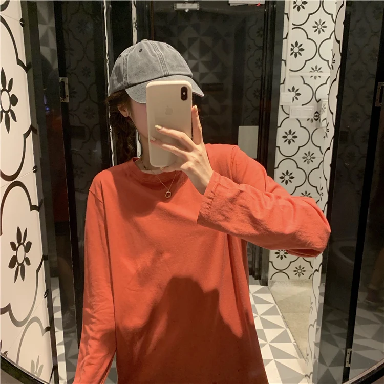 Женская футболка с длинным рукавом TingYiLi, Повседневная Свободная длинная футболка в Корейском стиле, черный, белый, серый, фиолетовый, синий, зеленый топ