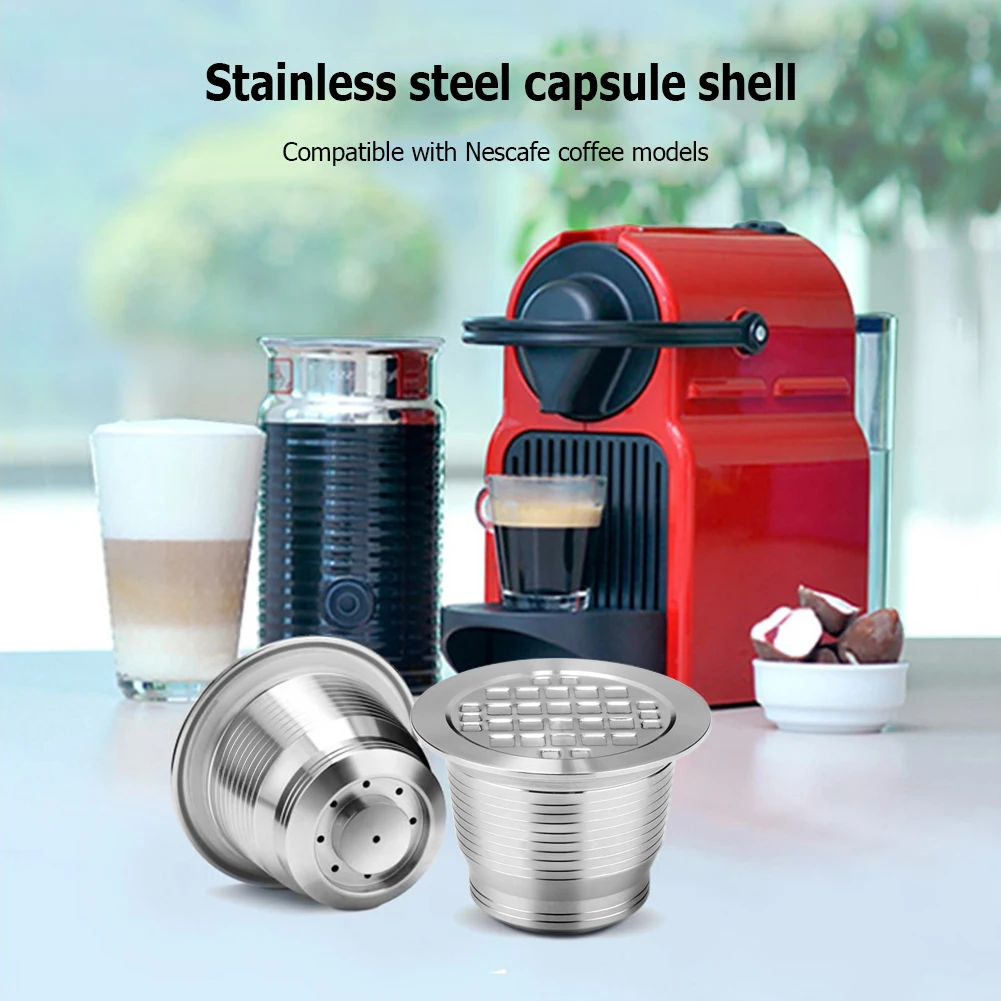 Многоразовые кофейные капсульные чашки из нержавеющей стали Многоразовые корзины с фильтром Pod + ложка-кисточка для кухонных гаджетов Nescafe Cafe