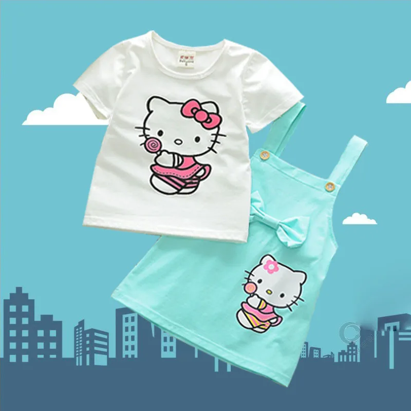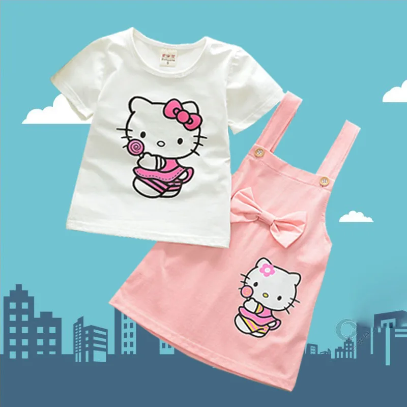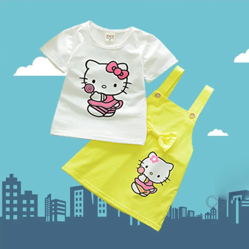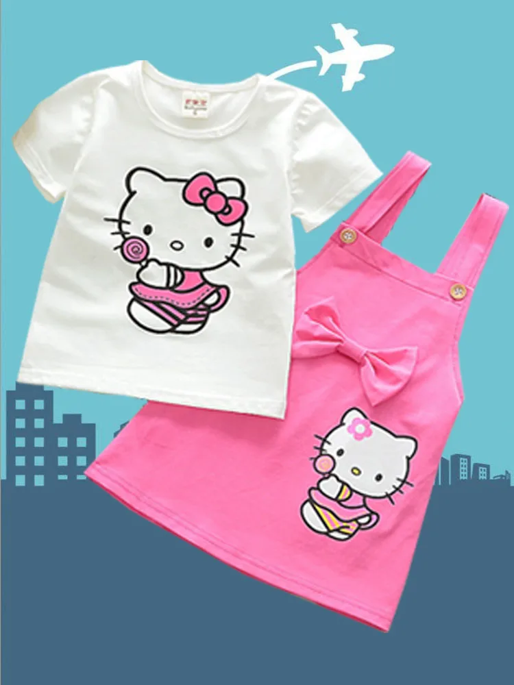 Костюм для детей комплект из двух предметов для малышей, футболка с короткими рукавами и рисунком + юбка на подтяжках качественная летняя одежда для детей 1-4 лет