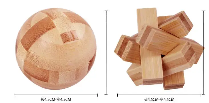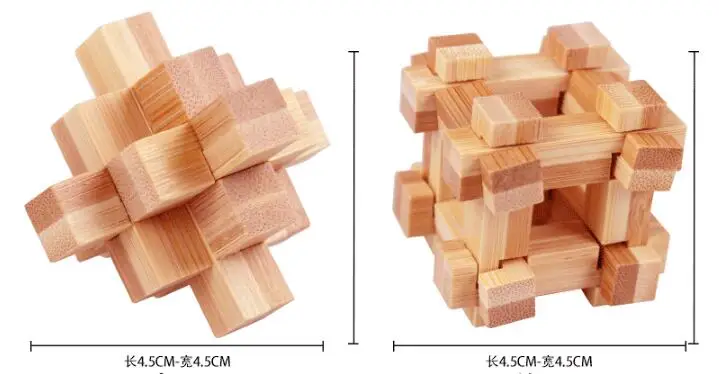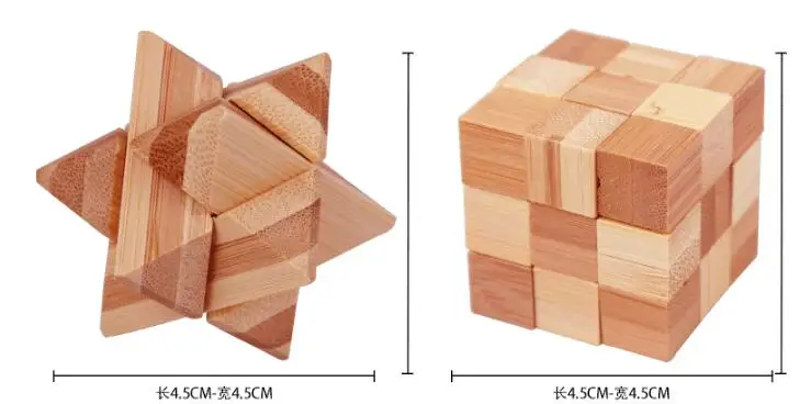 Размер для каждого бамбукового пазла: около 4,5*4,5*4,5 см