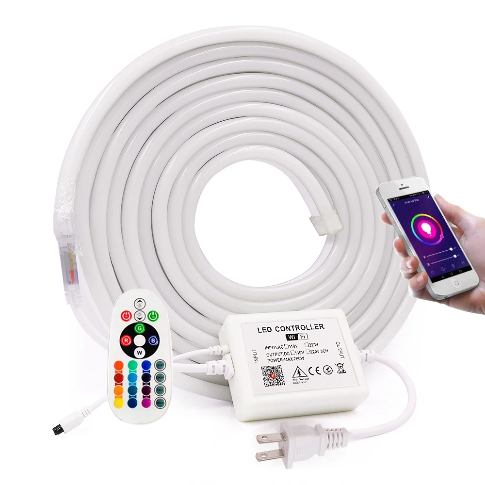 ◆RGBСветодиодный неоновый светильник + wifi контроллер + 1 пульт дистанционного управления + алюминиевые Зажимы (Батарея в комплект не входит)