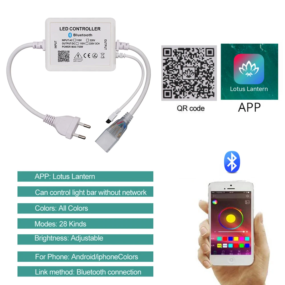 ◆RGBСветодиодный неоновый светильник + контроллер bluetooth + 1 пульт дистанционного управления + алюминиевые Зажимы (Батарея в комплект не входит)