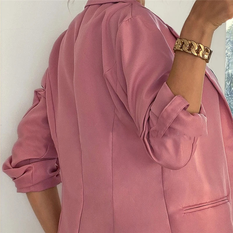 Новинка, Женский Осенний Блейзер, модный базовый Блейзер, повседневный однотонный пиджак на пуговицах с длинным рукавом, деловой костюм, элегантные блейзеры для девушек