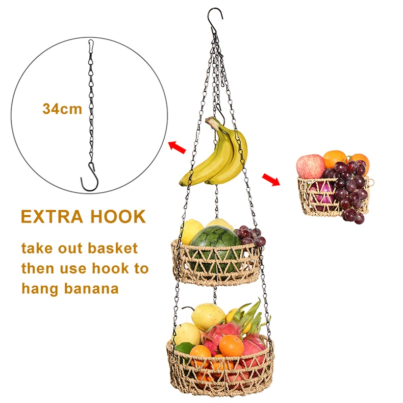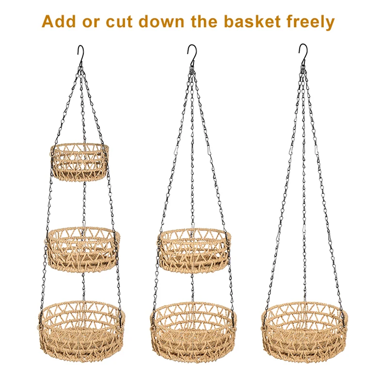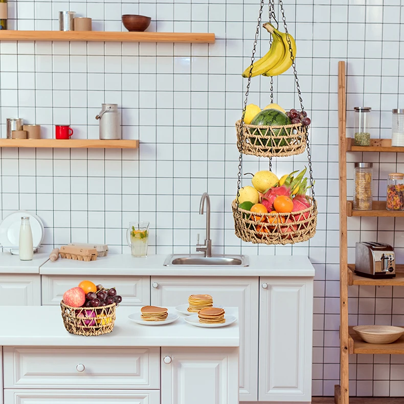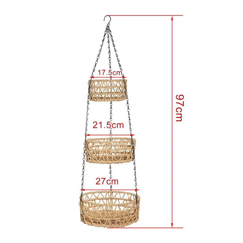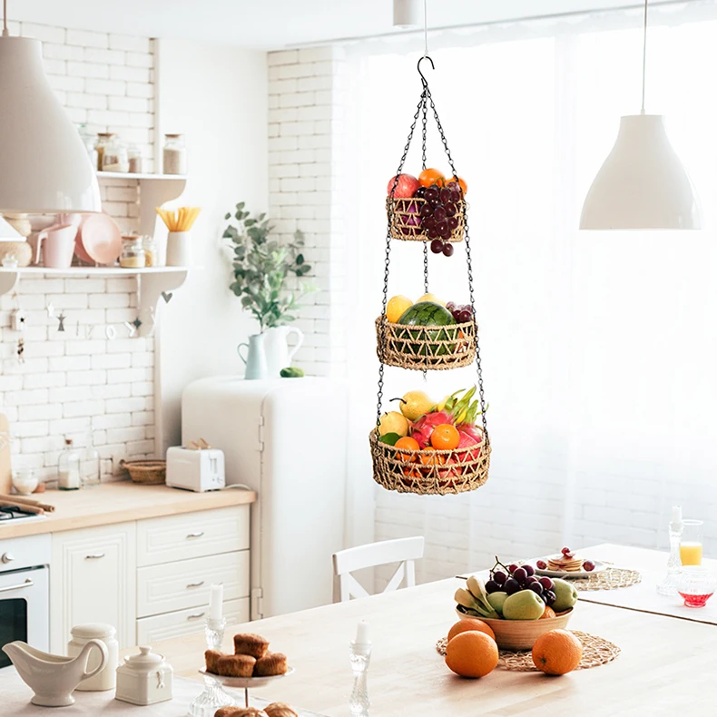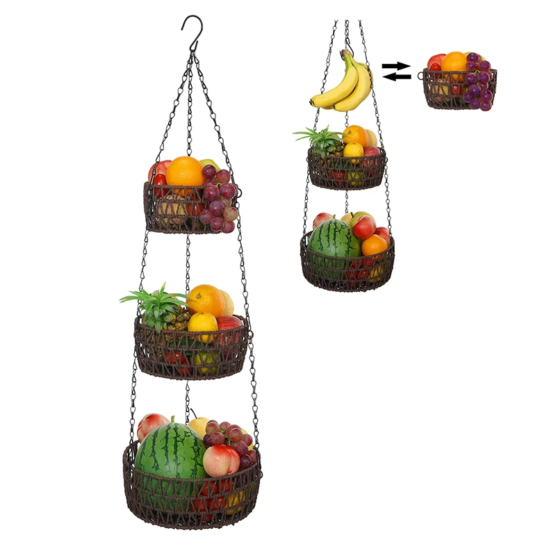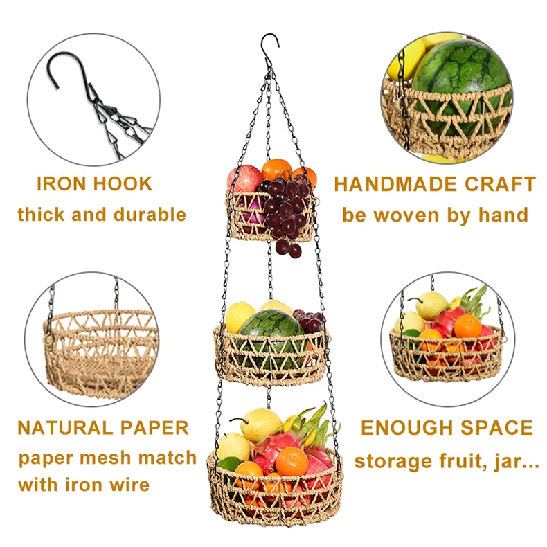 3-уровневая подвесная корзина для фруктов, держатель для домашних вещей, стойка для хранения из железной проволочной бумаги ручной работы, кухонные складные контейнеры