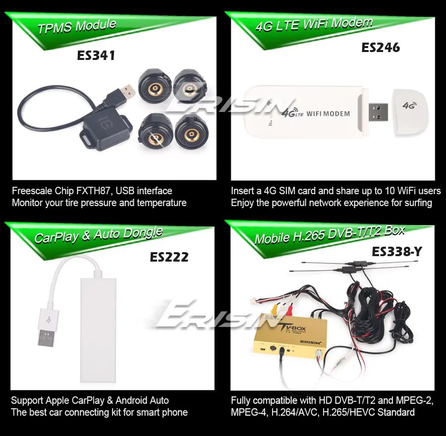 -Поддержка расширенных функций CarPlay, DAB +, DVB-T/T2, TPMS, OBD2, DVR, Camera, AVIN, 3G, 4G и т. д.