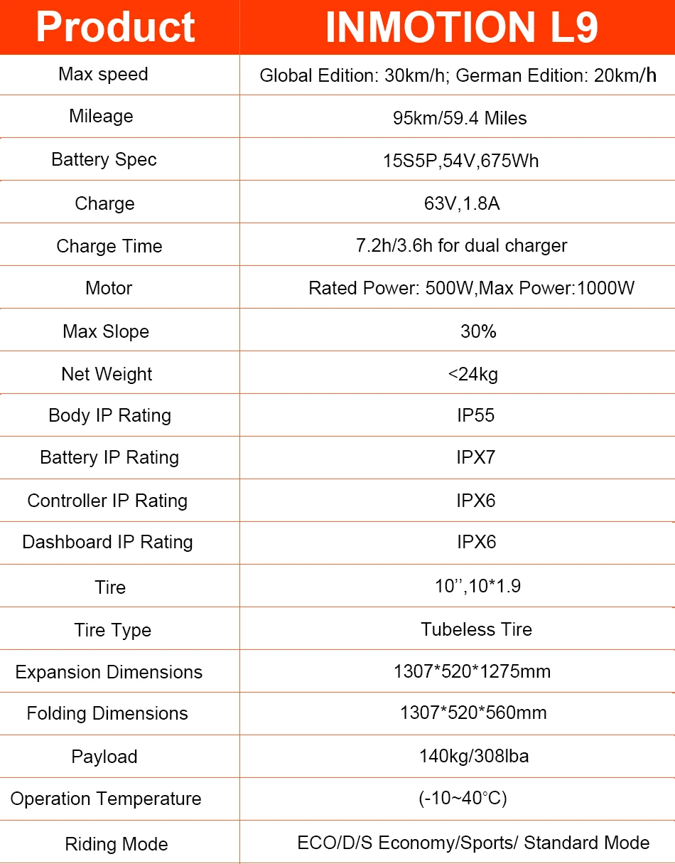 Устали от того же старого коммутирования? Нашли ли вы парковочное место, сидя в движении, и беспокоясь о ценах на газ, что привело к вам? Города созданы для изучения. Но автомобили неудобны, и велосипеды могут оставить вас потными и истощенными. Введите INMOTION L9, совершенно новый способ изучения вашего города. Благодаря непревзойденному диапазону, молниеносному зарядному устройству и плавной и удобной езде, L9 поможет вам увидеть совершенно новую сторону вашего города и переопределить вашу повседневную работу. Независимо от того, собираетесь ли вы работать, склеивать по соседству или направляетесь в город, L9 позволит вам общаться с вашим городом совершенно по-новому. Он безопасен, долговечен, прост в использовании и лучше всего? Это взрыв для езды!