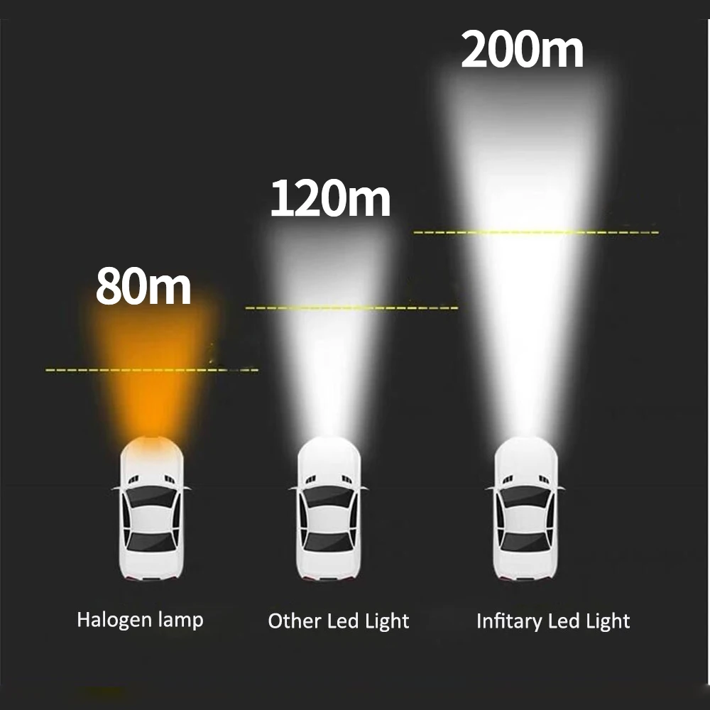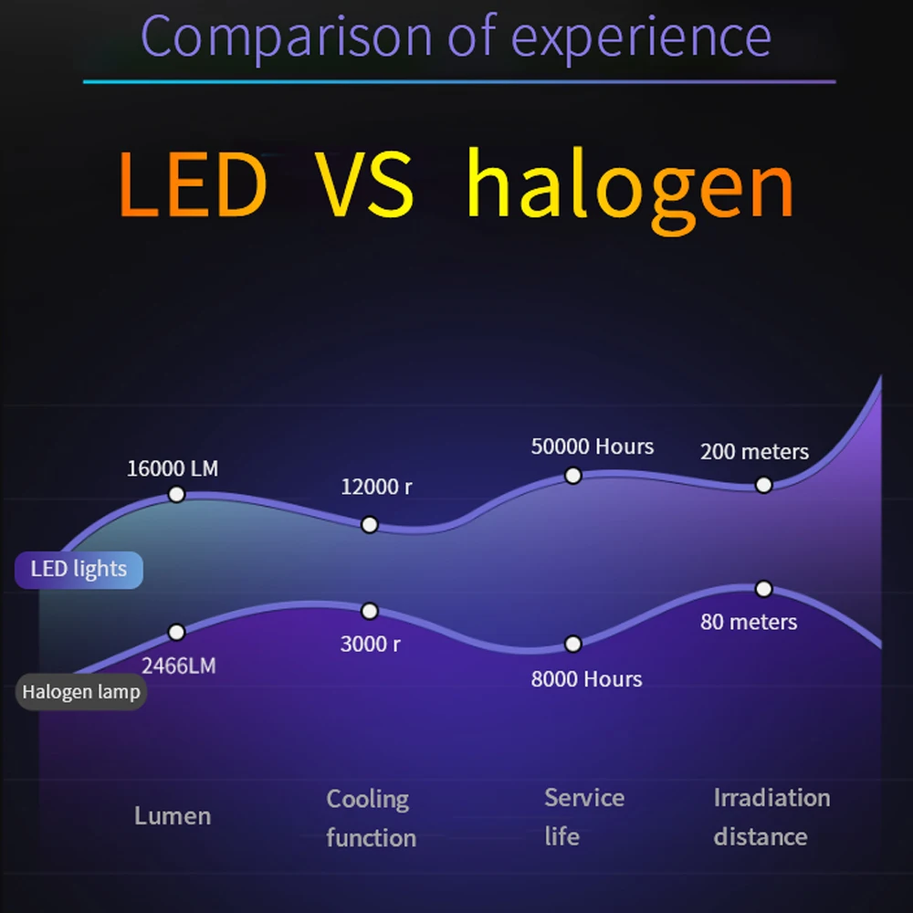 45W @ 8000LM каждая лампа, всего 90W @ 16000LM на пару, в 5 раз ярче галогенных ламп