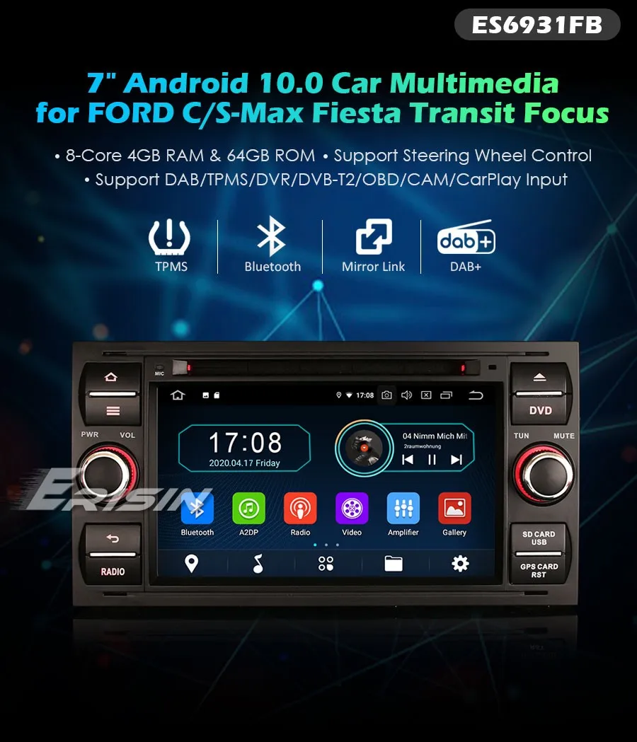 ES6931FB 7 "Восьмиядерный Android 10,0 автомобильный мультимедиа с GPS радио WiFi BT TPMS/DVR/DTV/DAB-IN...