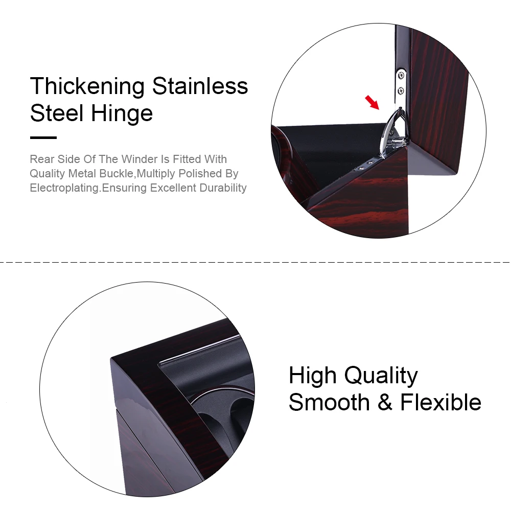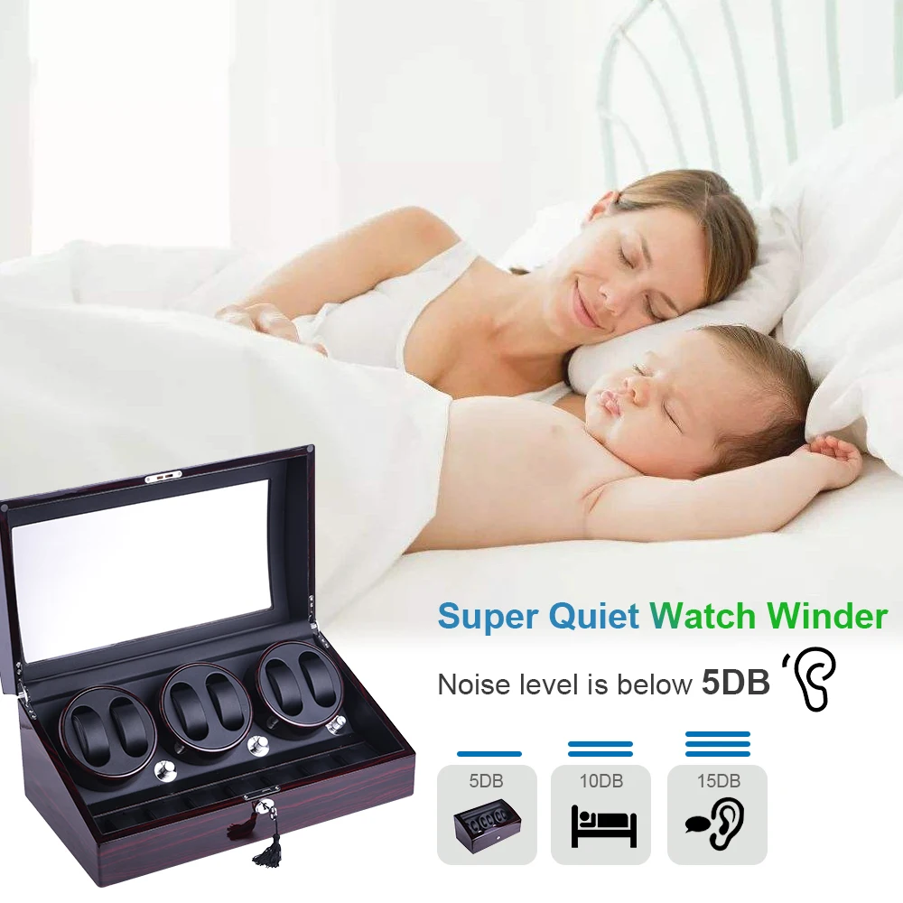【Extremely Quiet Winder】: This automatic watch winder box is powered with Imported Japanese Mabuchi, the noise is even as low as 5 db, will never disturb you in a silent place.