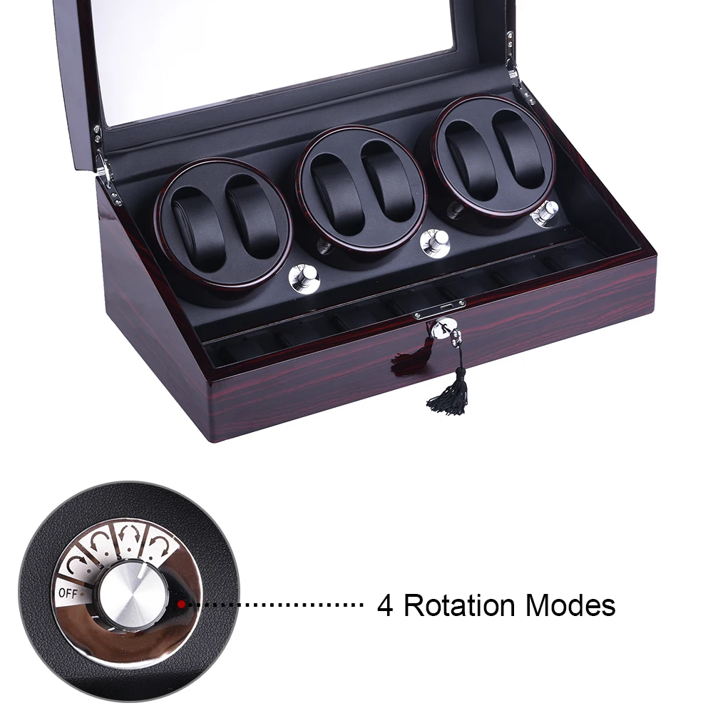 【4 Rotation Modes】Clockwise/Counterclockwise/Clockwise+counter-clockwise/ None-Intermittent clockwise +counter clockwise. The watch winders turn at regular intervals to keep the watch automatically wound and accurate when not on the wrist.