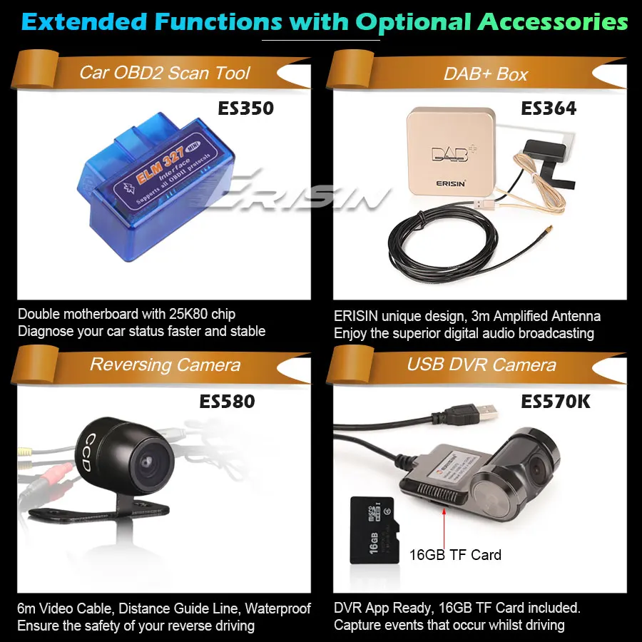 -Поддержка DAB +, DVB-T/T2, TPMS, OBD2, DVR, Camera, AVIN, 3G, 4G и т. д. расширенные функции.