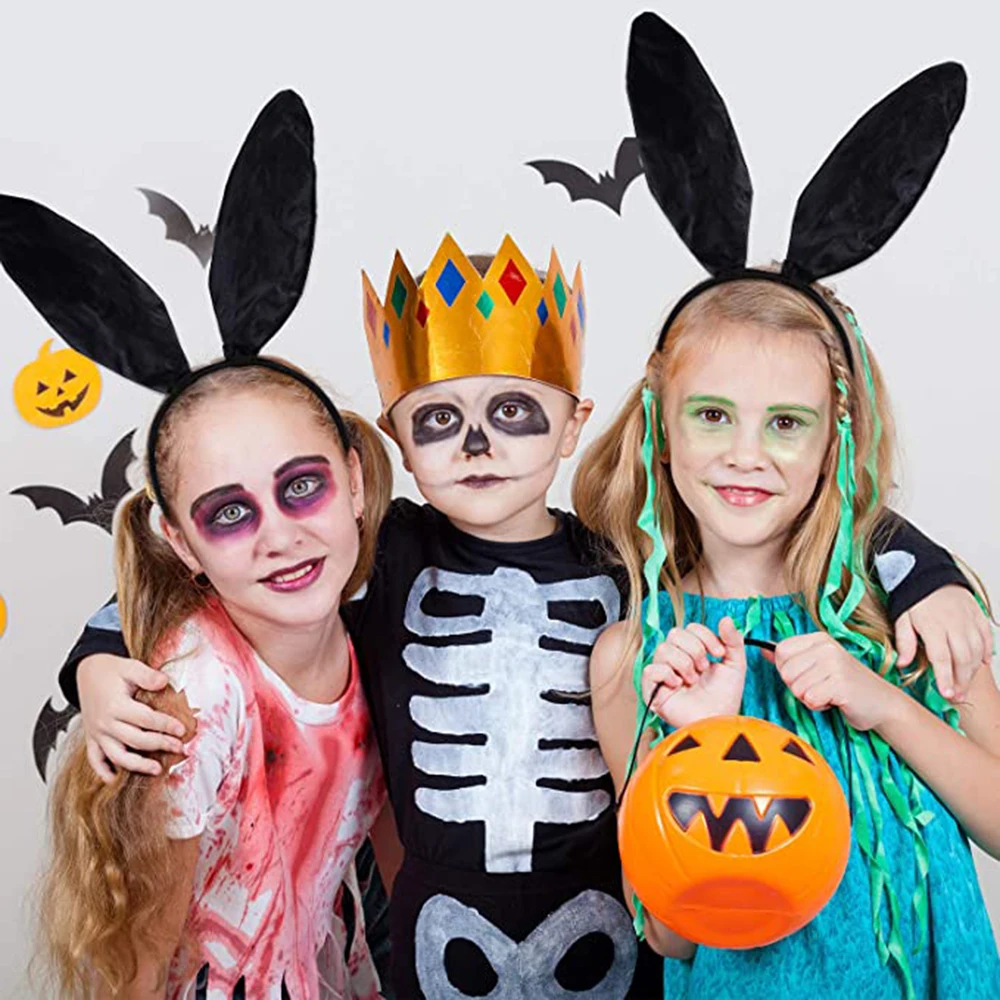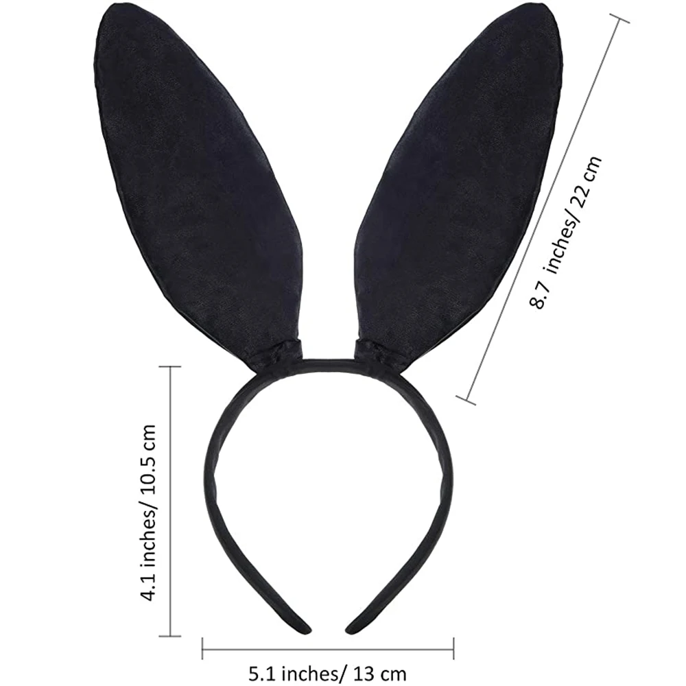 -Черная атласная повязка на уши кролика из полиэстера.