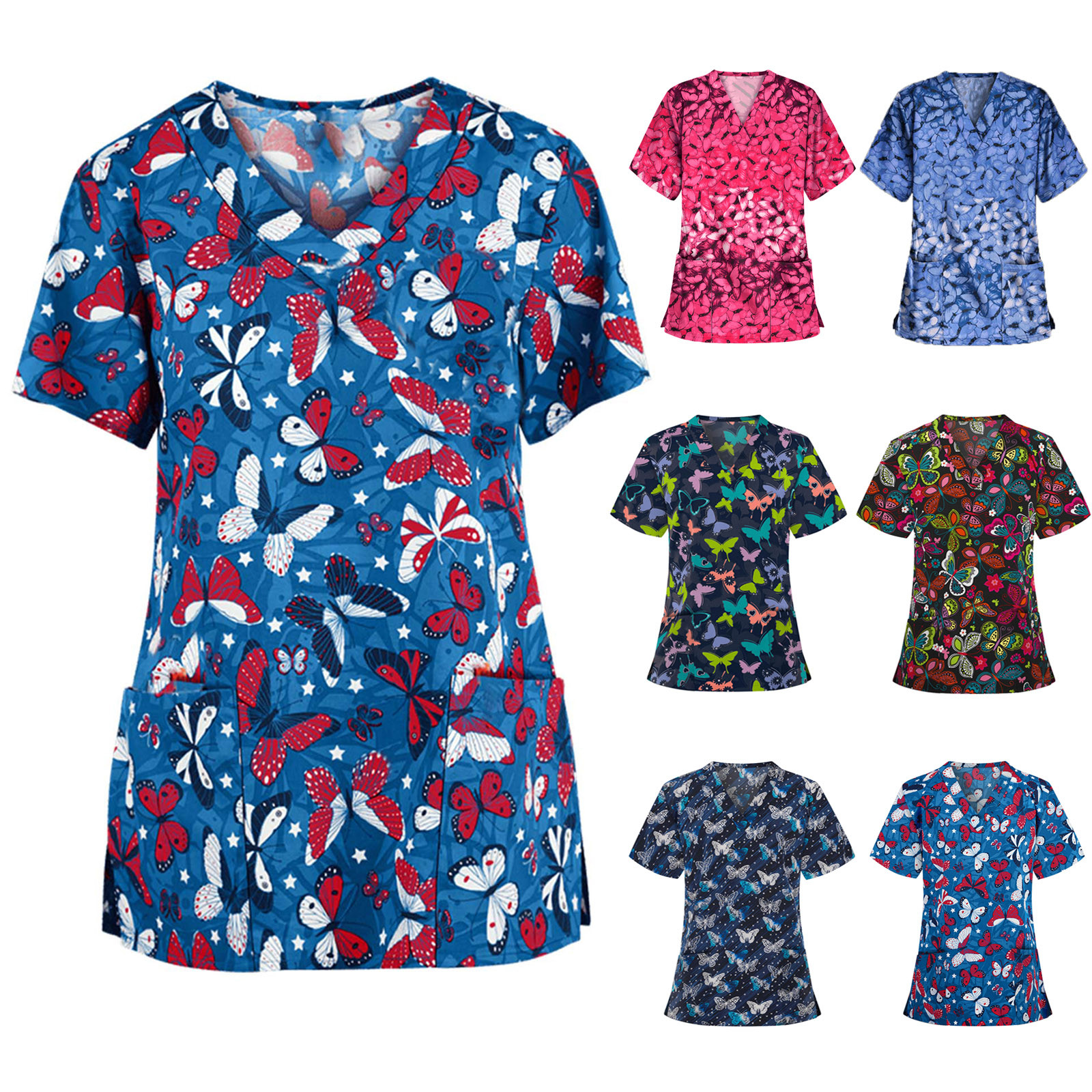 Женские топы с коротким рукавом и v-образным вырезом, Рабочая Униформа, блузка