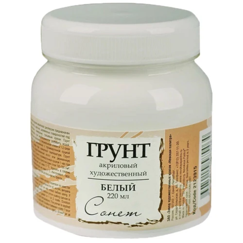 - для грунтования холста , дерева , картона перед работой масляными , акриловыми темперными и гуашевыми красками