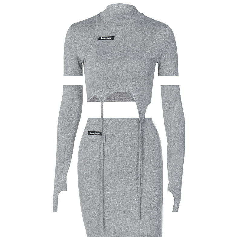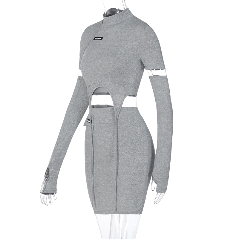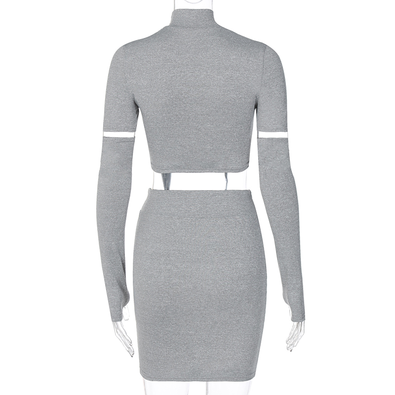 Женский комплект из двух предметов, Стильный укороченный топ с высоким воротником и рукавами на рукавах + мини-юбка-карандаш, клубная одежда