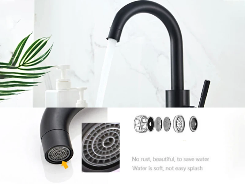 Черный кухонный кран для раковины 304 из нержавеющей стали с одной ручкой с одним отверстием для горячей и холодной воды смеситель для ванной комнаты