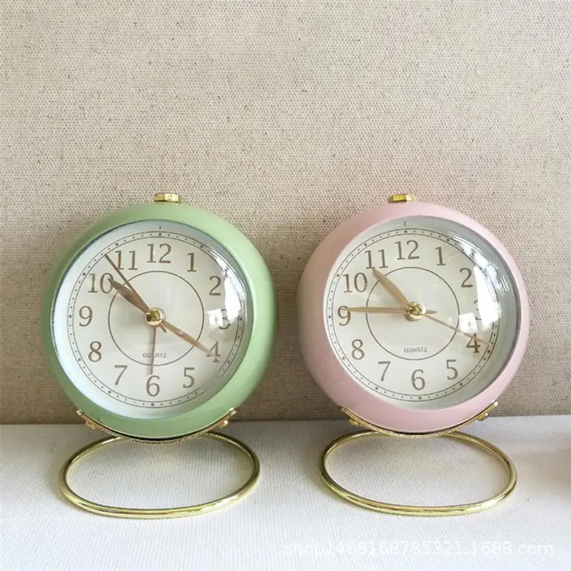 Скандинавские минималистичные Часы Ретро стиль металлический будильник круглый рабочий стол прикроватные креативные бесшумные будильники настольные украшения