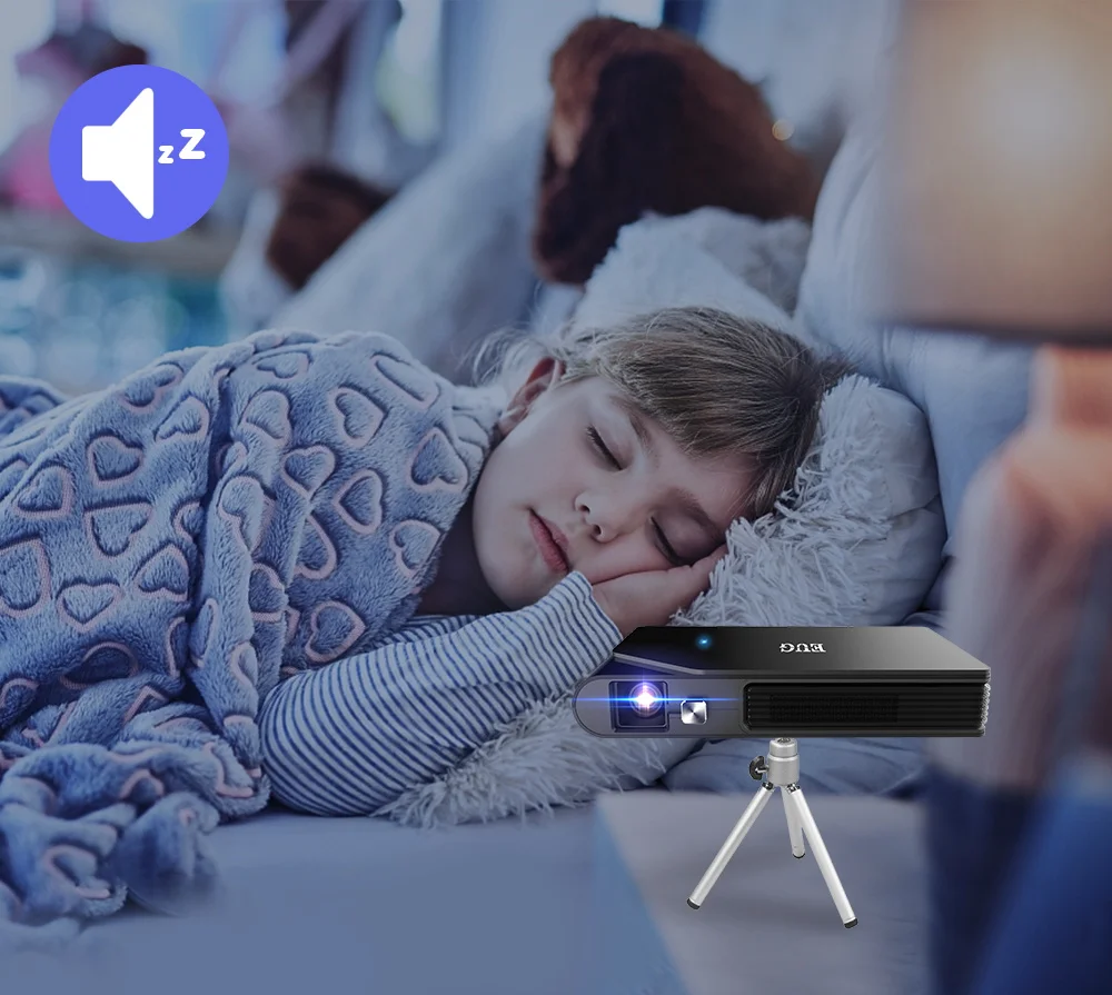 Расширенный охлаждающими вентиляторами. Шум ниже среднего, что вы забудете о его наличии, когда работает мини-проектор