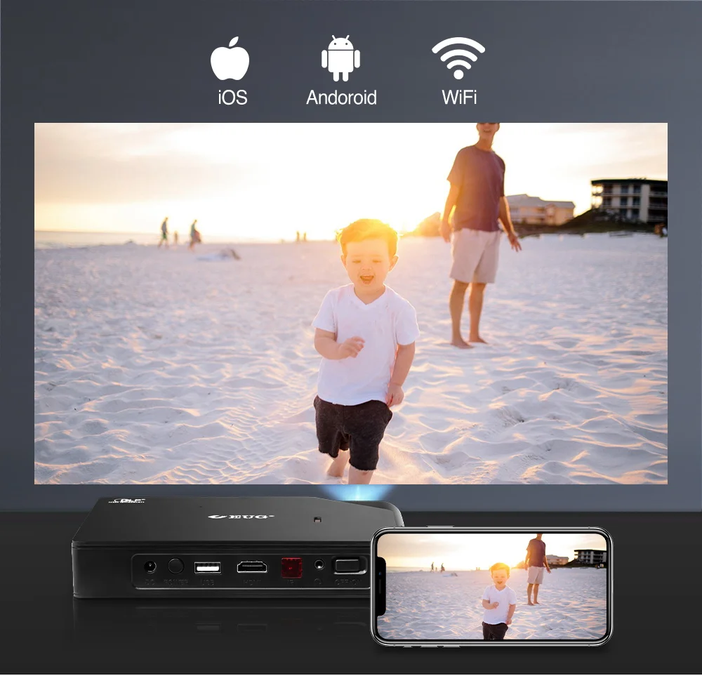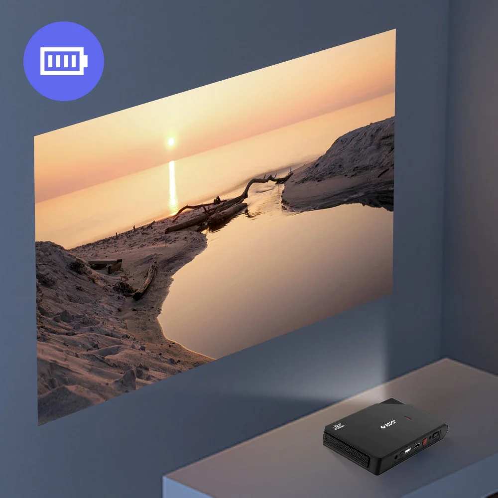 Благодаря встроенному аккумулятору емкостью 8400 мАч микропроектор может использоваться в течение 1,5-2 часов. Вам не нужно искать длинные кабели питания, когда вы хотите смотреть сериалы или спортивные игры во дворе.