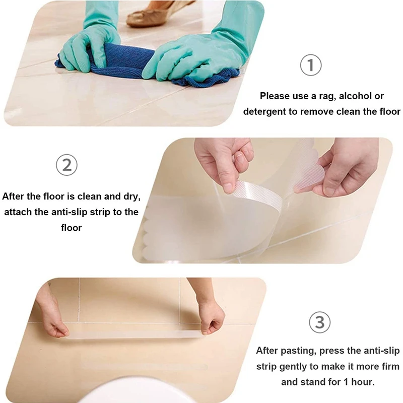 Широкое применение: Нескользящие наклейки для ванной подходят для любой скользкой поверхности, такой как ванны, душевая кабина, полы для ванной, бассейны, лестницы, дверной проем и т. д. Предотвращает скольжение и обеспечивает безопасность во время принятия душа.