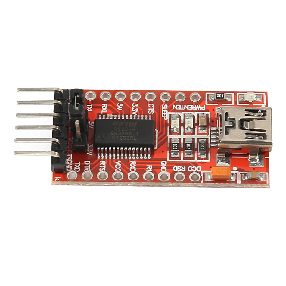 FT232R-это интерфейс USB to serial UART Недорогой способ добавить возможность USB к микроконтроллерам. Используйте это, чтобы предоставить свой собственный макет для USB возможности для загрузки или загрузки эскизов. RXD/TXD трансивер Коммуникационный индикатор Включает защиту от перегрузки по току, с помощью самовосстанавливающегося предохранителя 500 мА Эта плата включает DTR pin, необходимый для автоматического сброса при загрузке на ваше устройство. Цвет: красный USB Питание: 3,3 V или 5V Размер: 43*17 мм