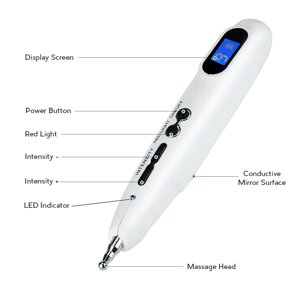 1. Электрическая акупунктурная ручка использует красный светильник 650 нм, с сильным проникновением глубоко в мышцы и стимулирует акупунктурные точки.