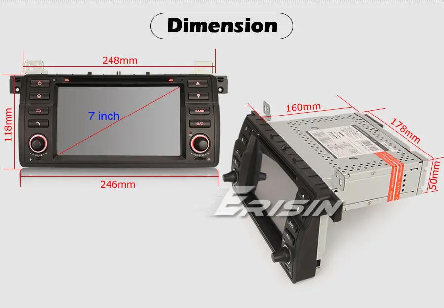Этот блок имеет размер передней панели248 мм (ширина верха) * 118 мм (высота) * 246 мм (ширина дна). Чтобы убедиться, что товар подходит вашему автомобилю, пожалуйста, проверьте форму и размеры вашего оригинального автомобильного медиаплеера, что соответствует описанию в нашем списке перед подачей заявки.